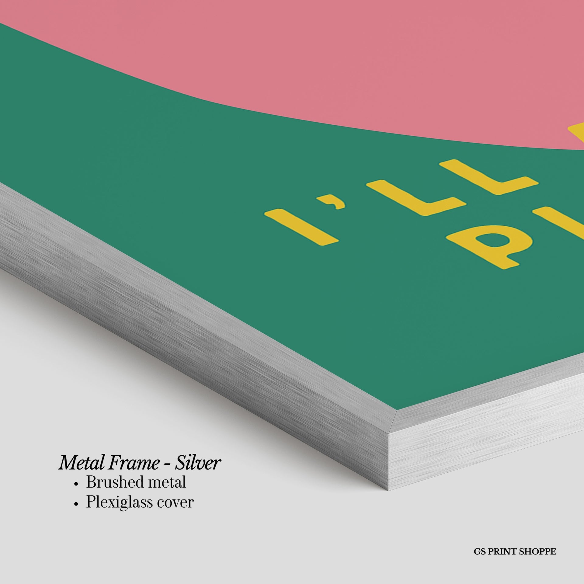 Metal Frame: Sleek and modern, our metal frame is crafted with brushed metal for a polished finish. It comes with durable plexiglass and sturdy metal hangers for horizontal or vertical display.
