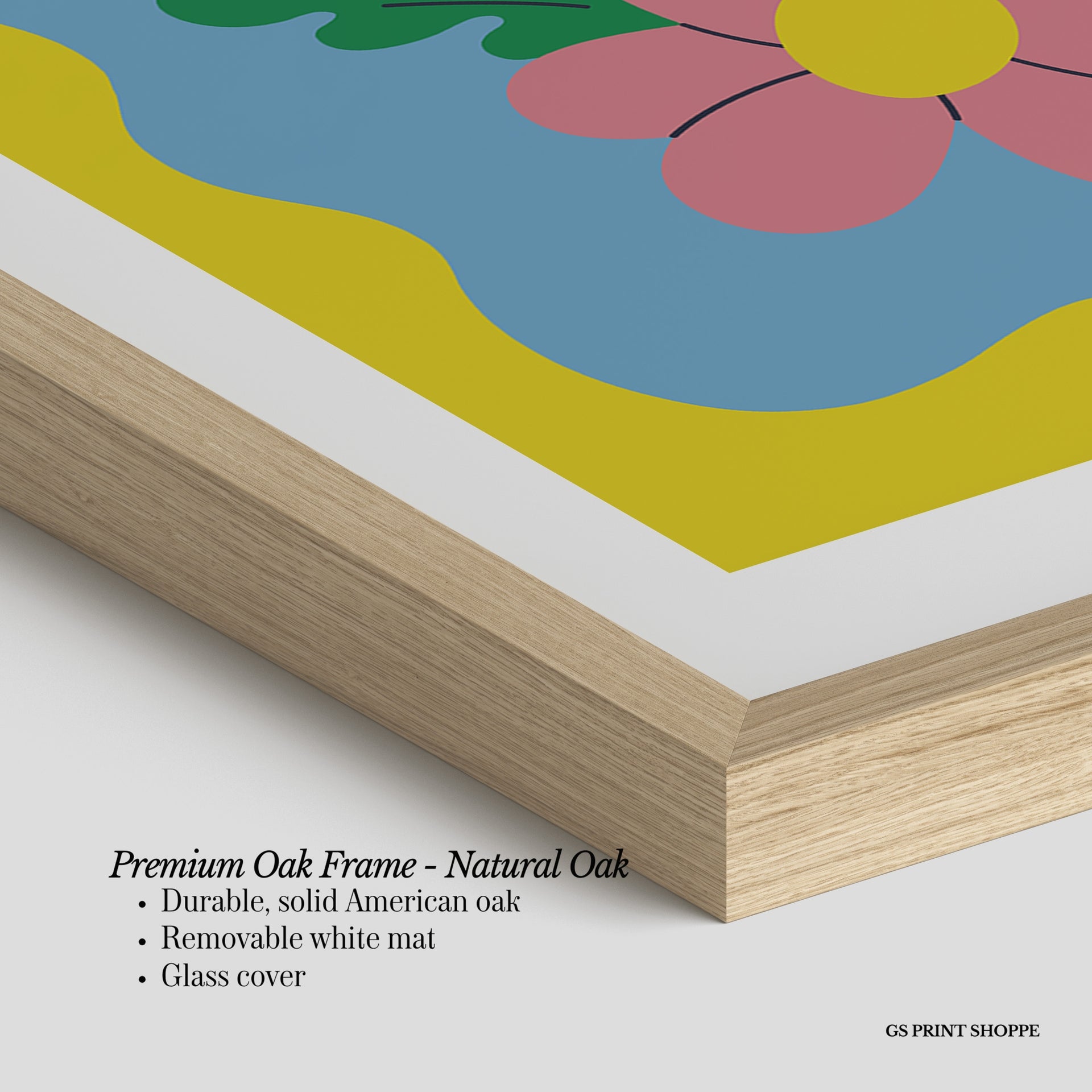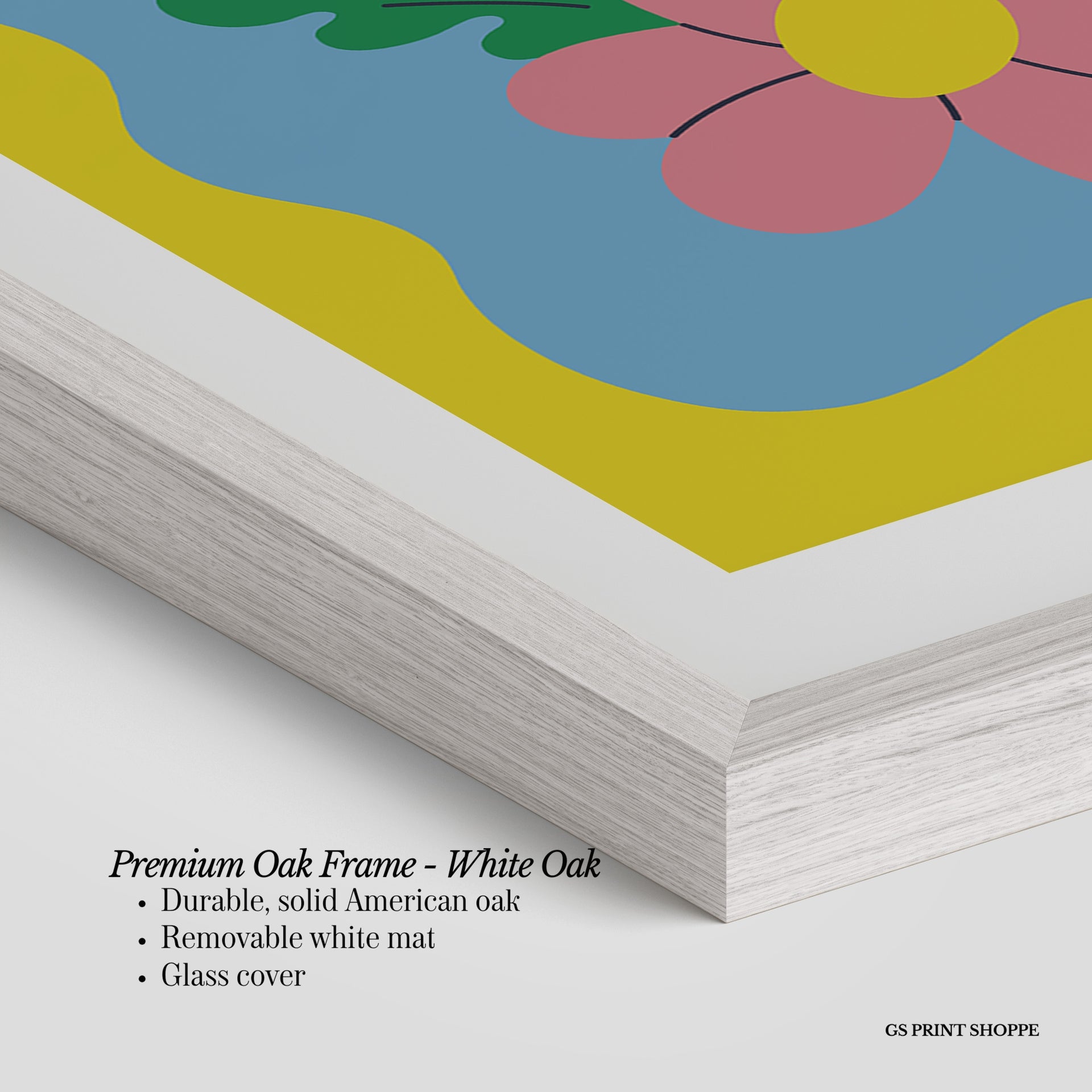 Premium Oak Frame: Our premium oak frame is crafted from solid American oak, offering a warm, natural feel with a high-end finish. We complete this elevated offering with a bright white removable mat and real glass for a versatile and polished look.