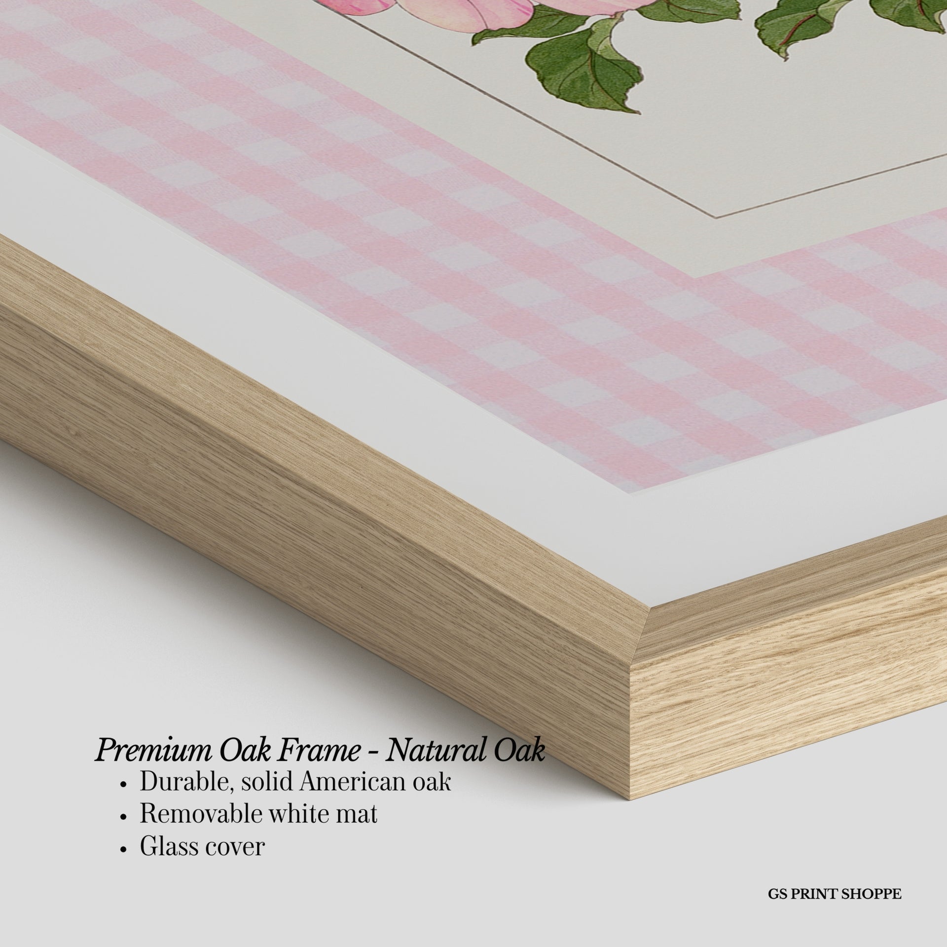 Premium Oak Frame: Our premium oak frame is crafted from solid American oak, offering a warm, natural feel with a high-end finish. We complete this elevated offering with a bright white removable mat and real glass for a versatile and polished look.
