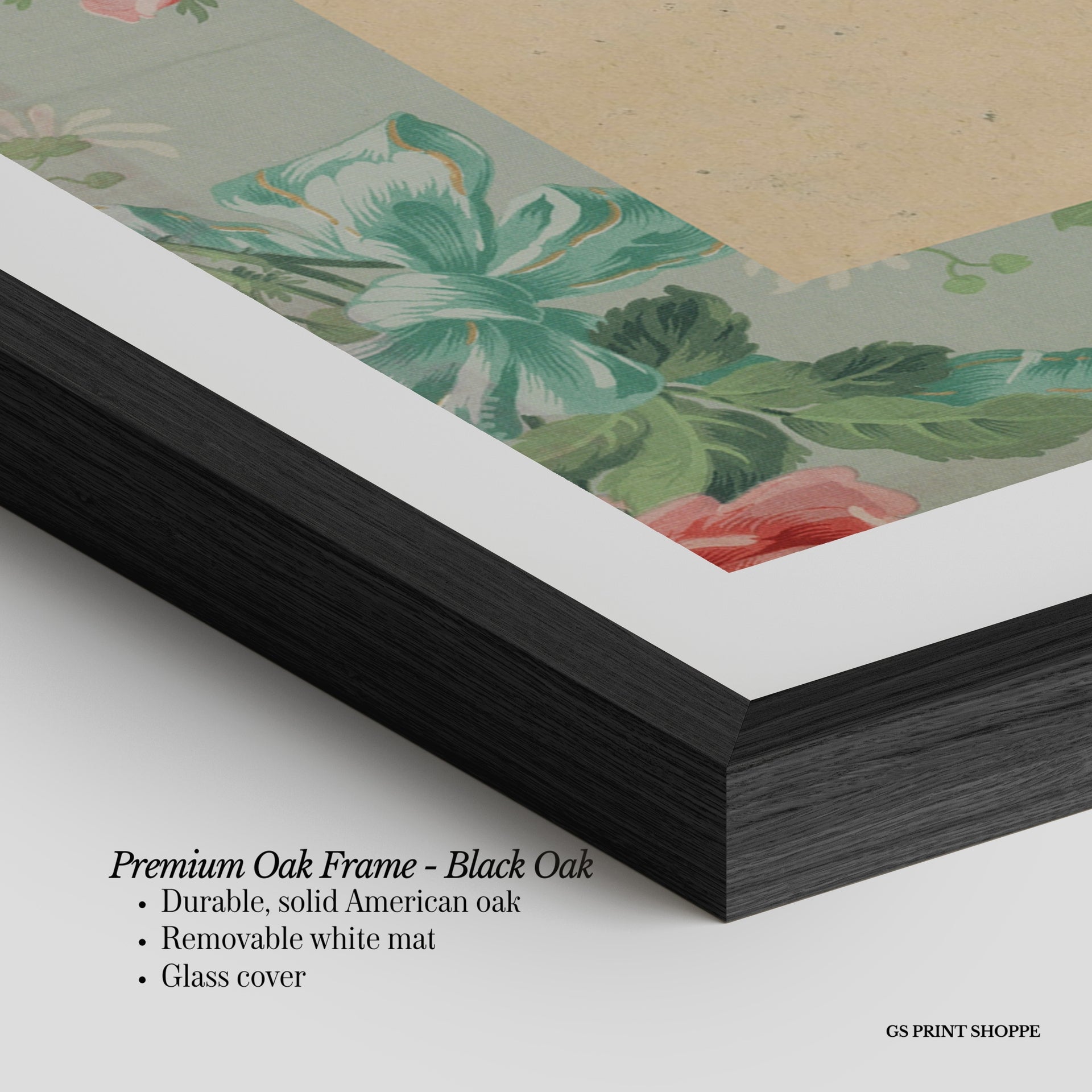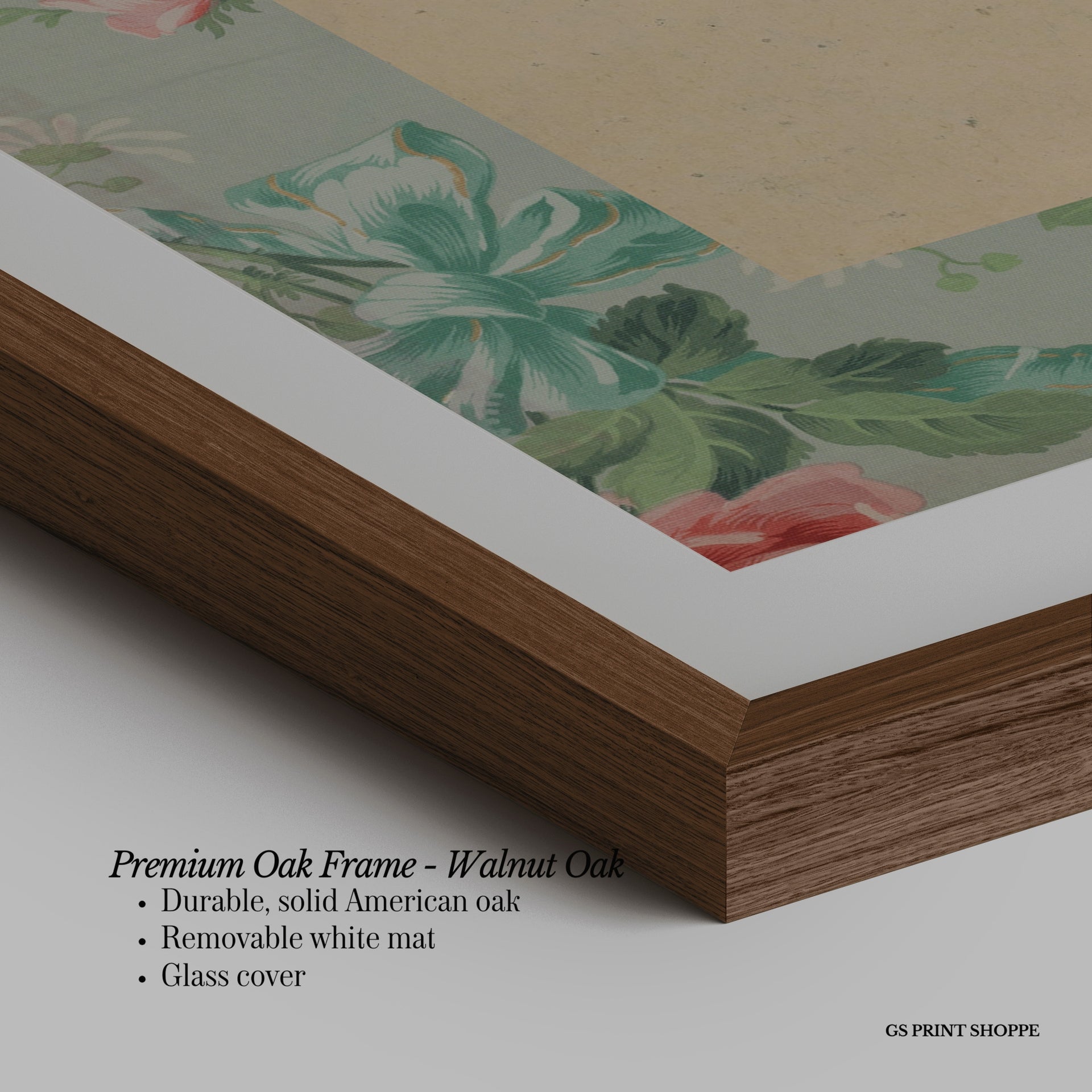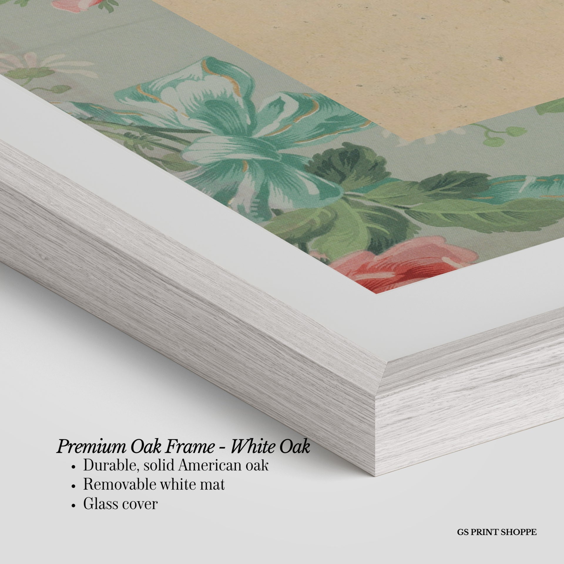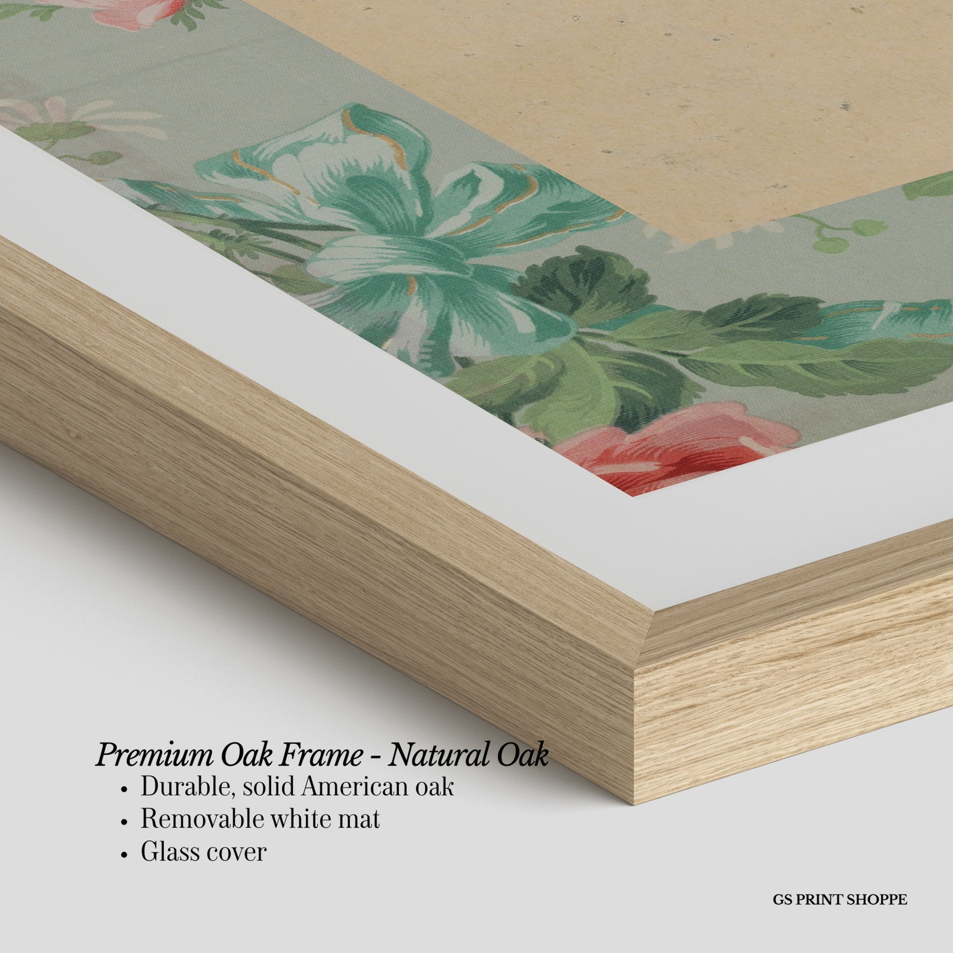 Premium Oak Frame: Our premium oak frame is crafted from solid American oak, offering a warm, natural feel with a high-end finish. We complete this elevated offering with a bright white removable mat and real glass for a versatile and polished look.