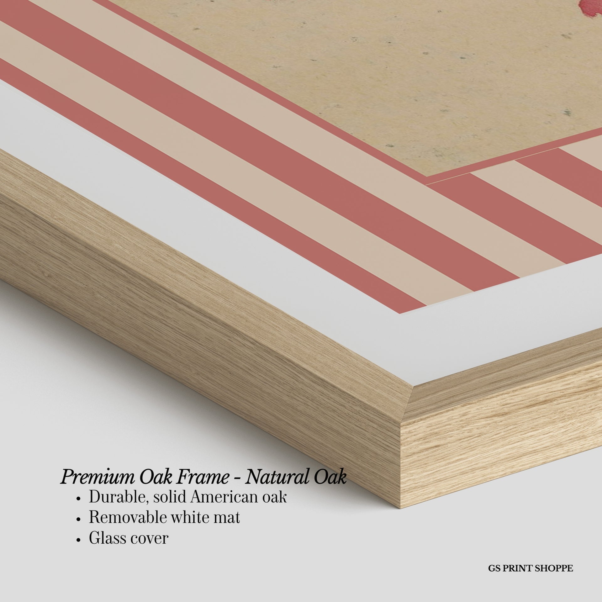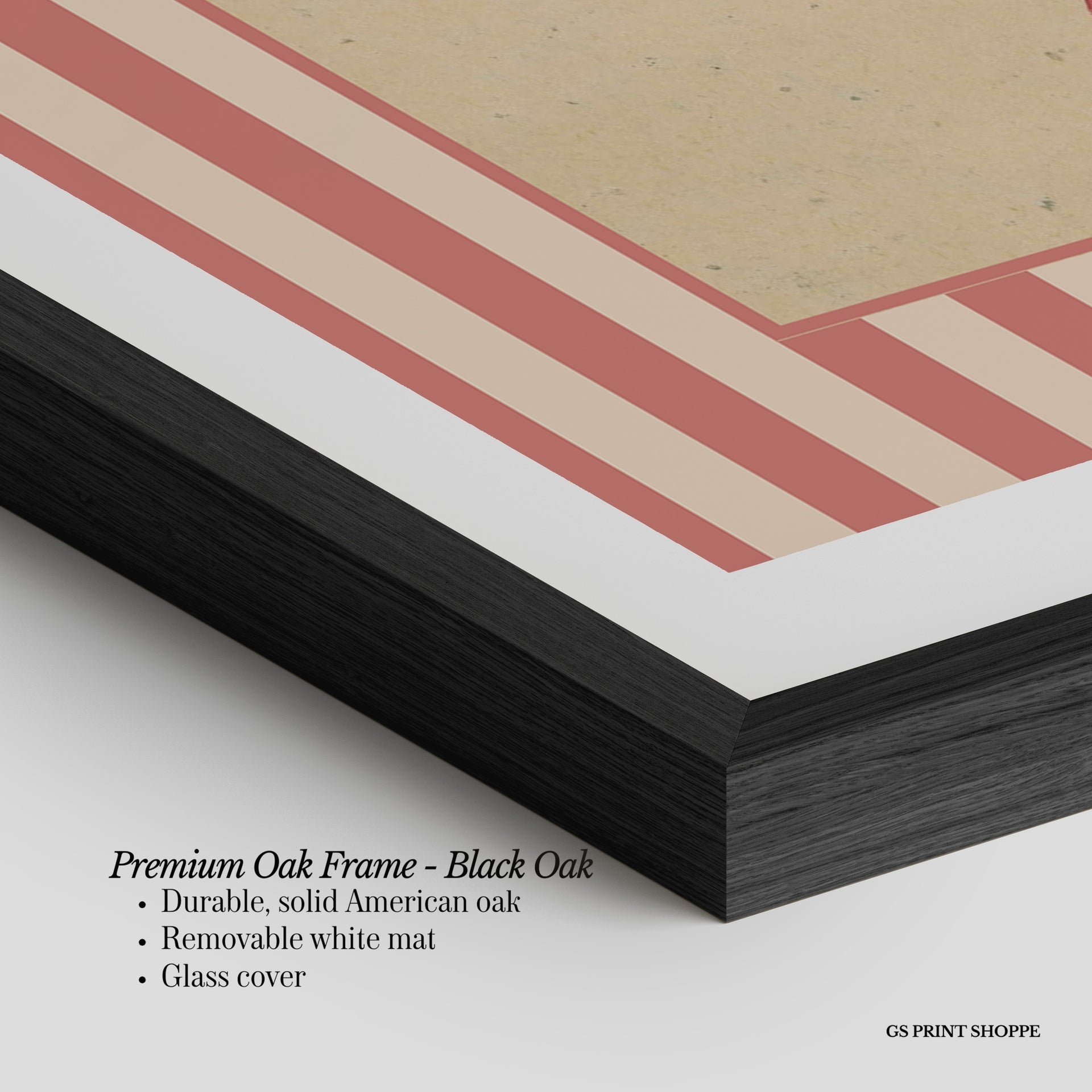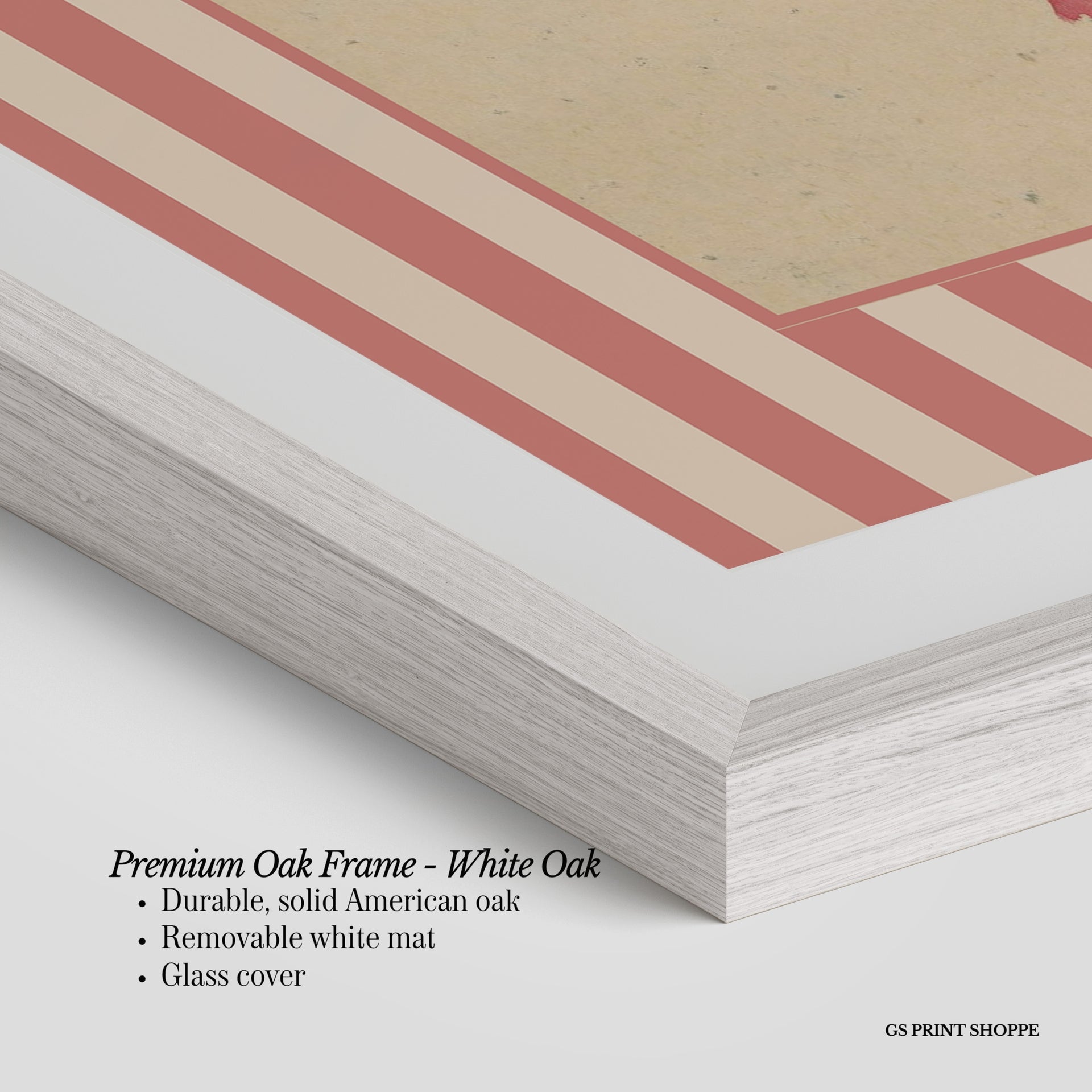 Premium Oak Frame: Our premium oak frame is crafted from solid American oak, offering a warm, natural feel with a high-end finish. We complete this elevated offering with a bright white removable mat and real glass for a versatile and polished look.