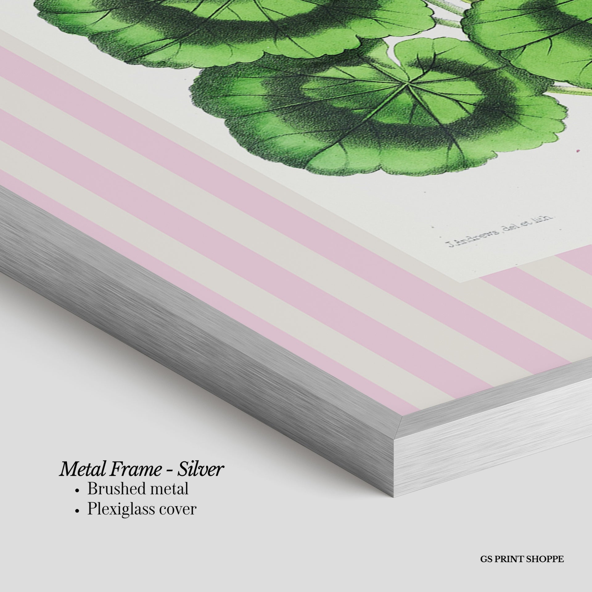 Metal Frame: Sleek and modern, our metal frame is crafted with brushed metal for a polished finish. It comes with durable plexiglass and sturdy metal hangers for horizontal or vertical display.