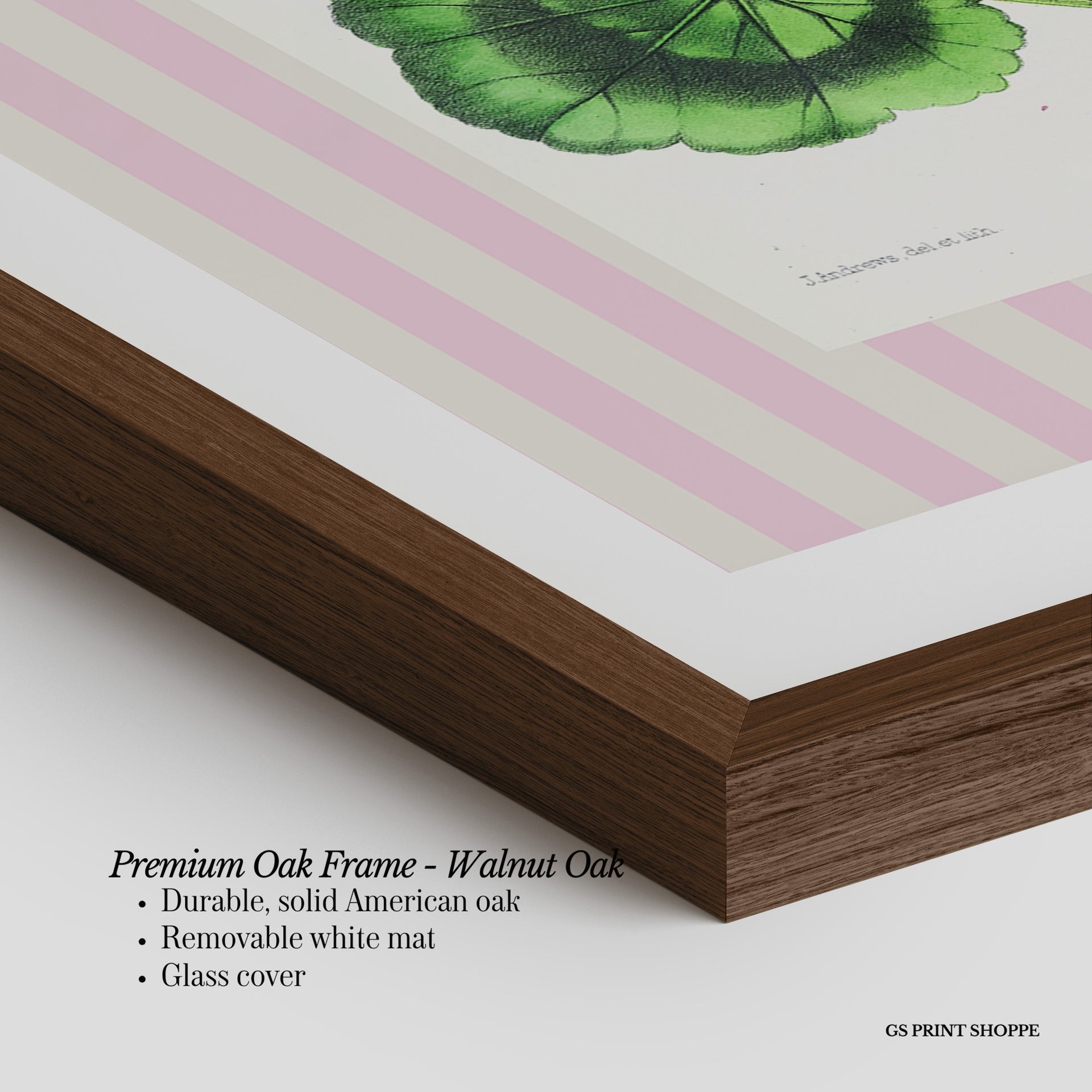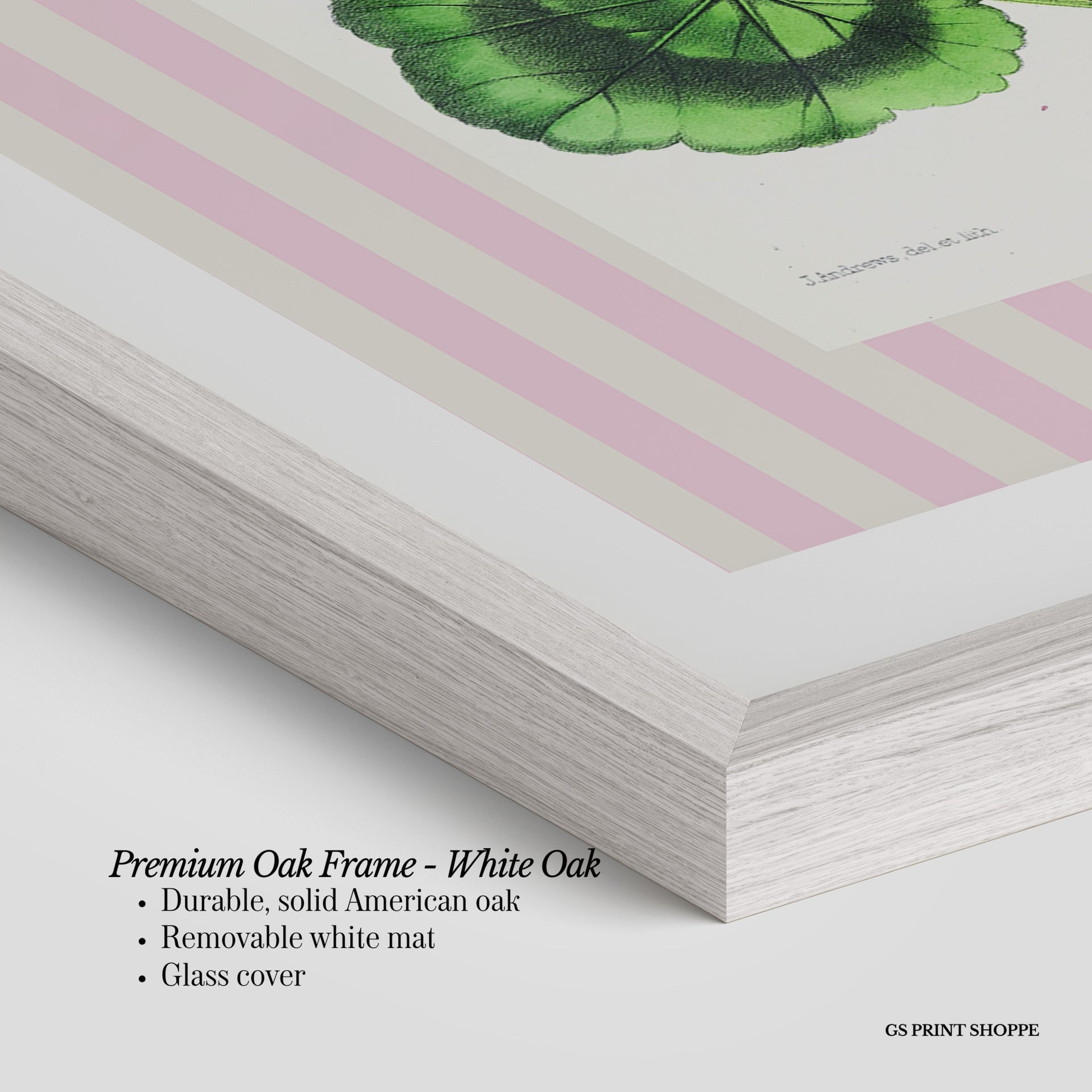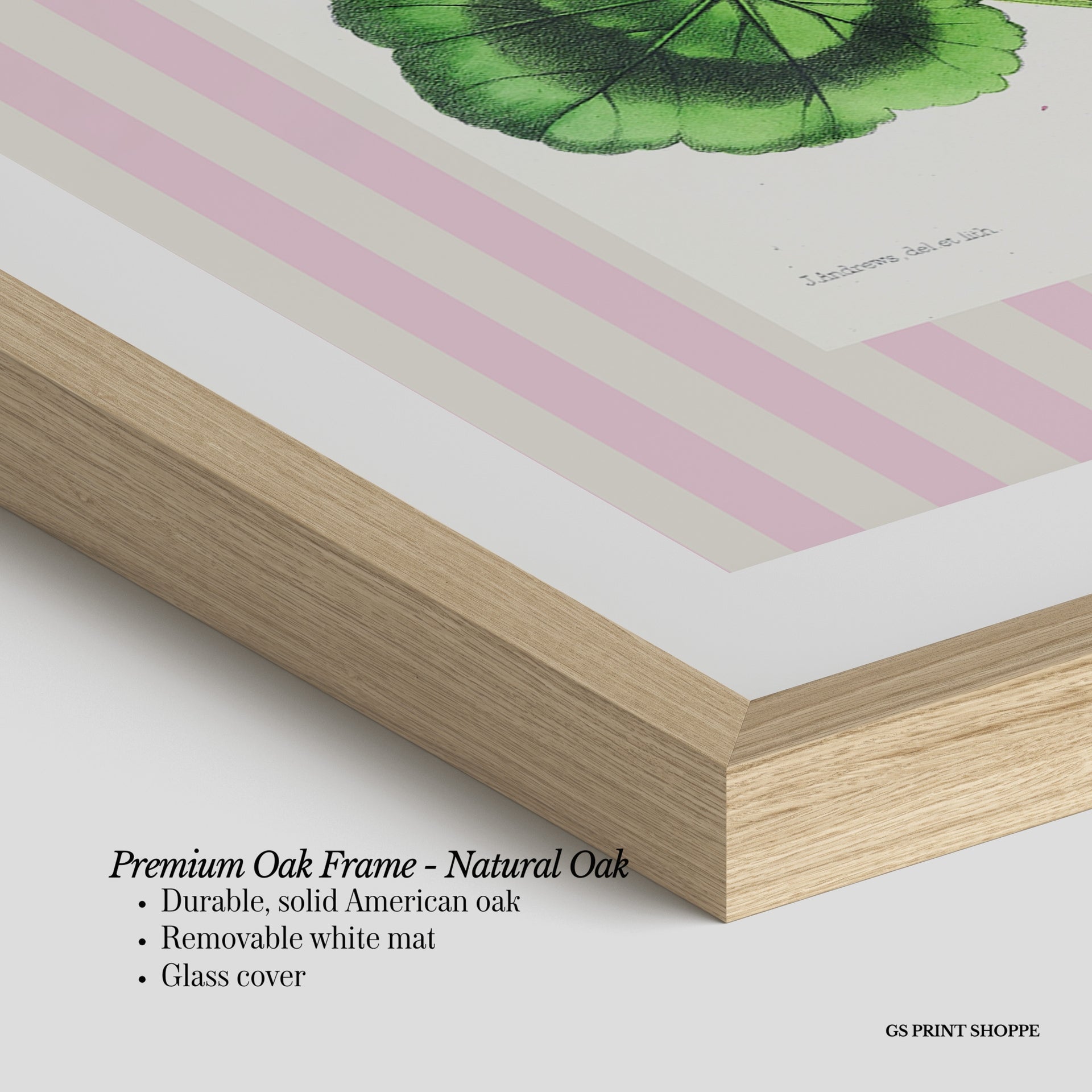 Premium Oak Frame: Our premium oak frame is crafted from solid American oak, offering a warm, natural feel with a high-end finish. We complete this elevated offering with a bright white removable mat and real glass for a versatile and polished look.
