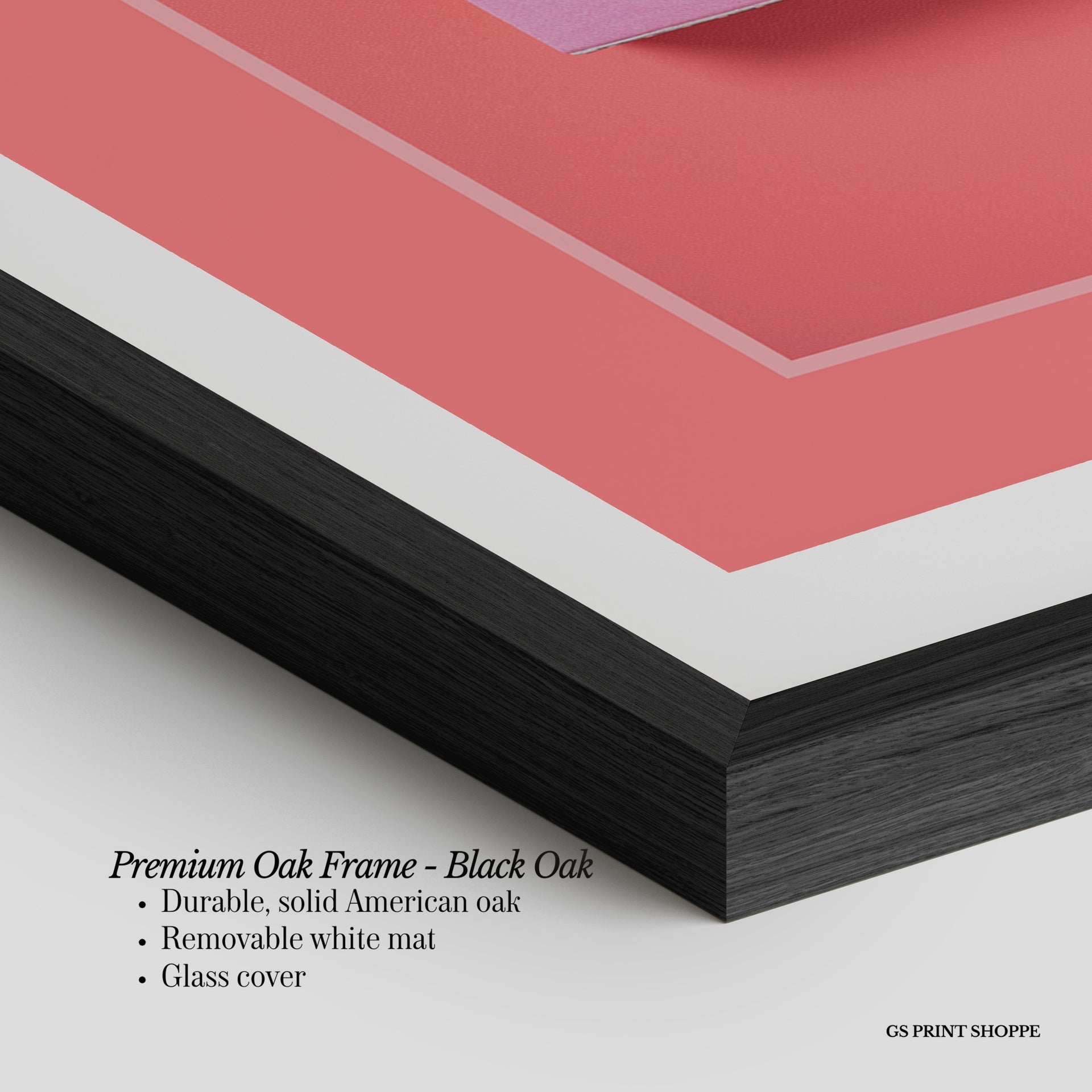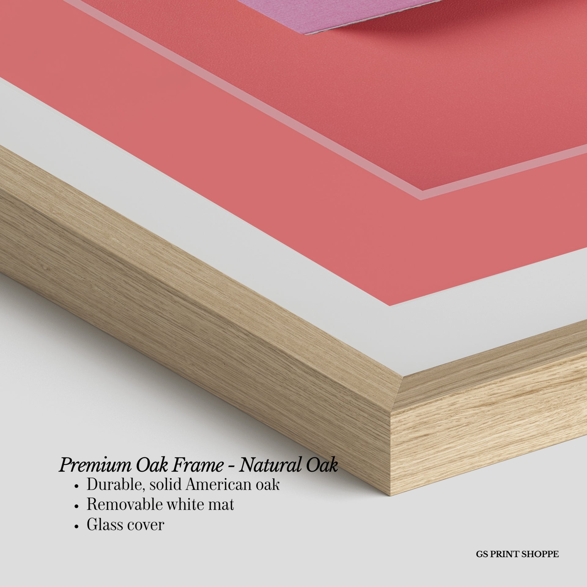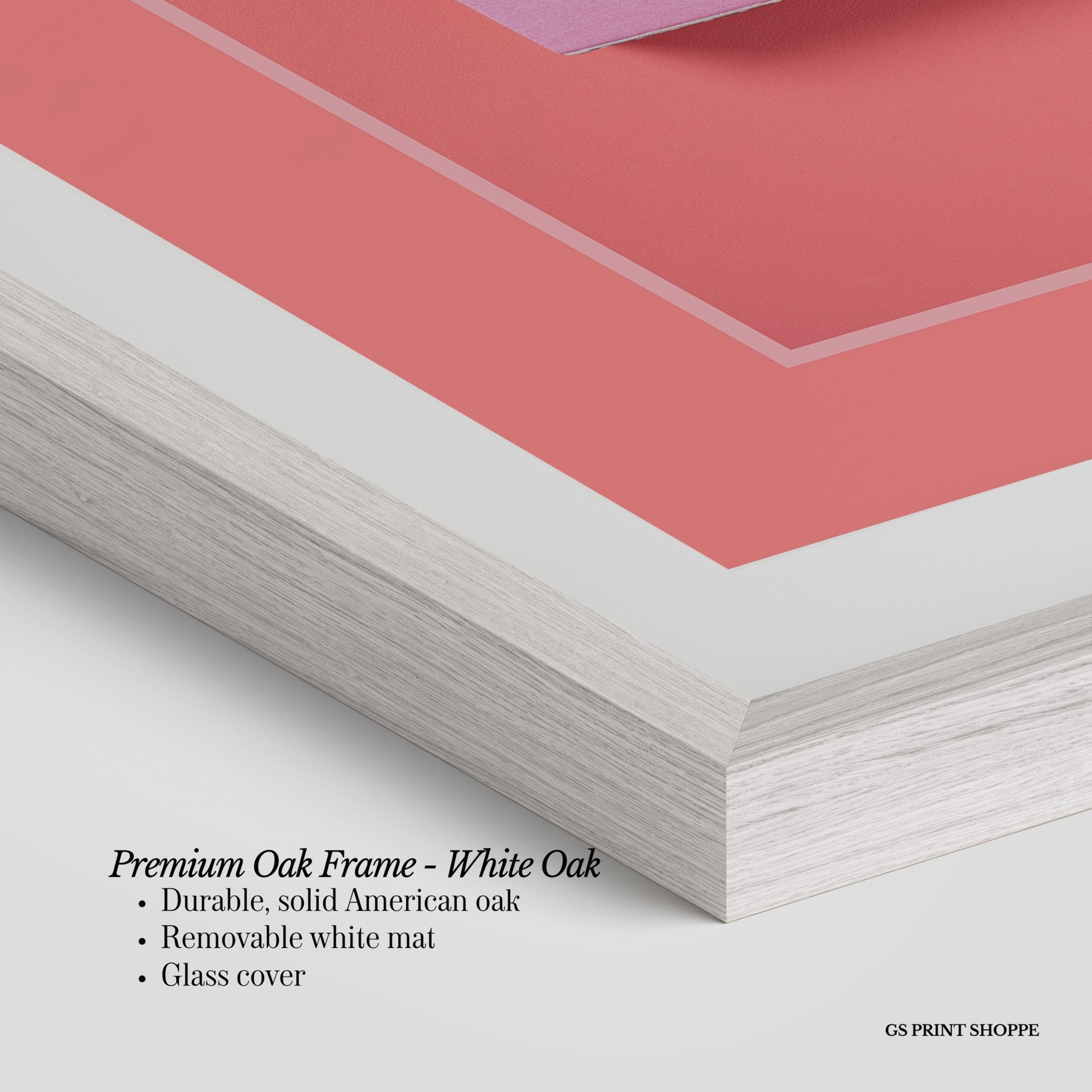 Premium Oak Frame: Our premium oak frame is crafted from solid American oak, offering a warm, natural feel with a high-end finish. We complete this elevated offering with a bright white removable mat and real glass for a versatile and polished look.