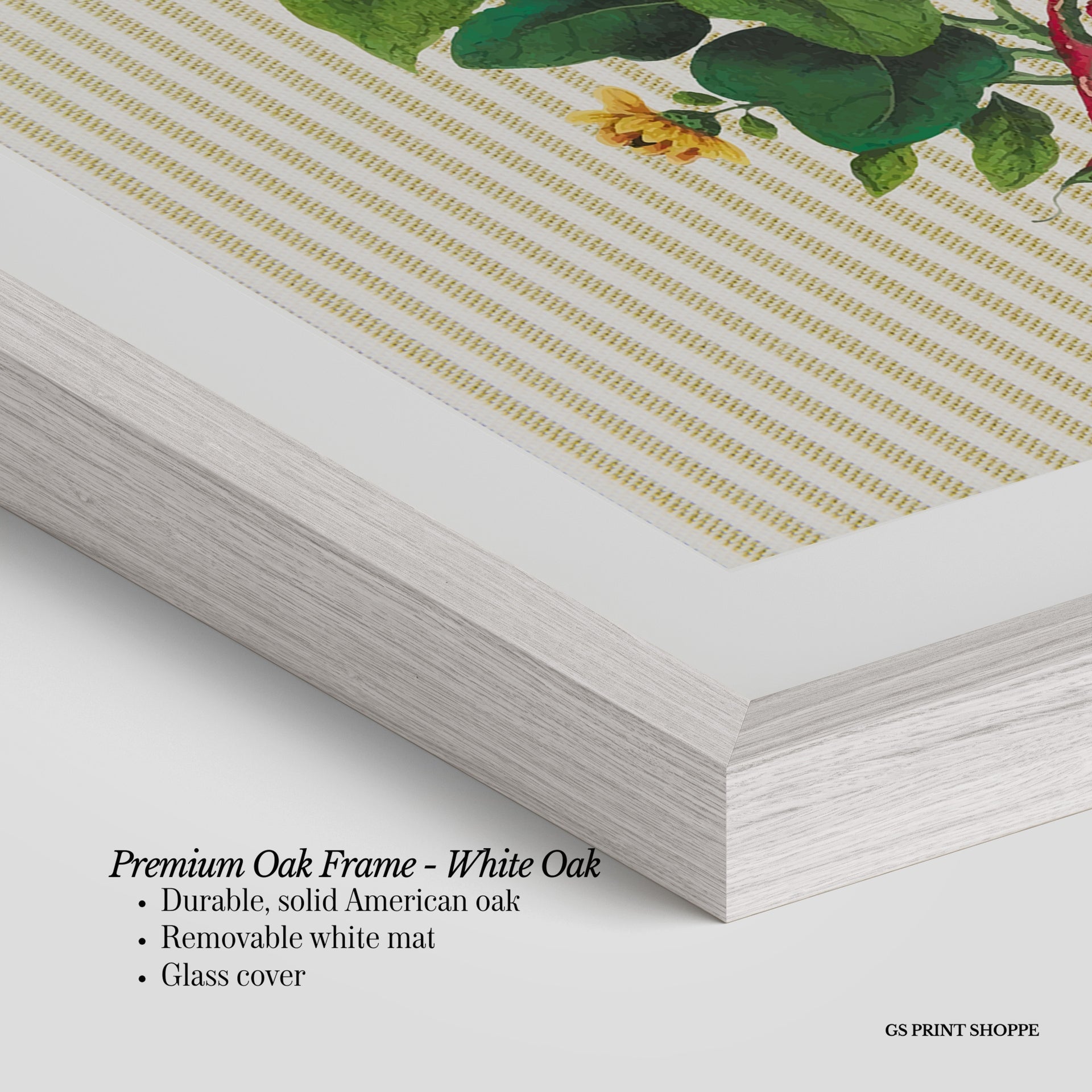 Premium Oak Frame: Our premium oak frame is crafted from solid American oak, offering a warm, natural feel with a high-end finish. We complete this elevated offering with a bright white removable mat and real glass for a versatile and polished look.