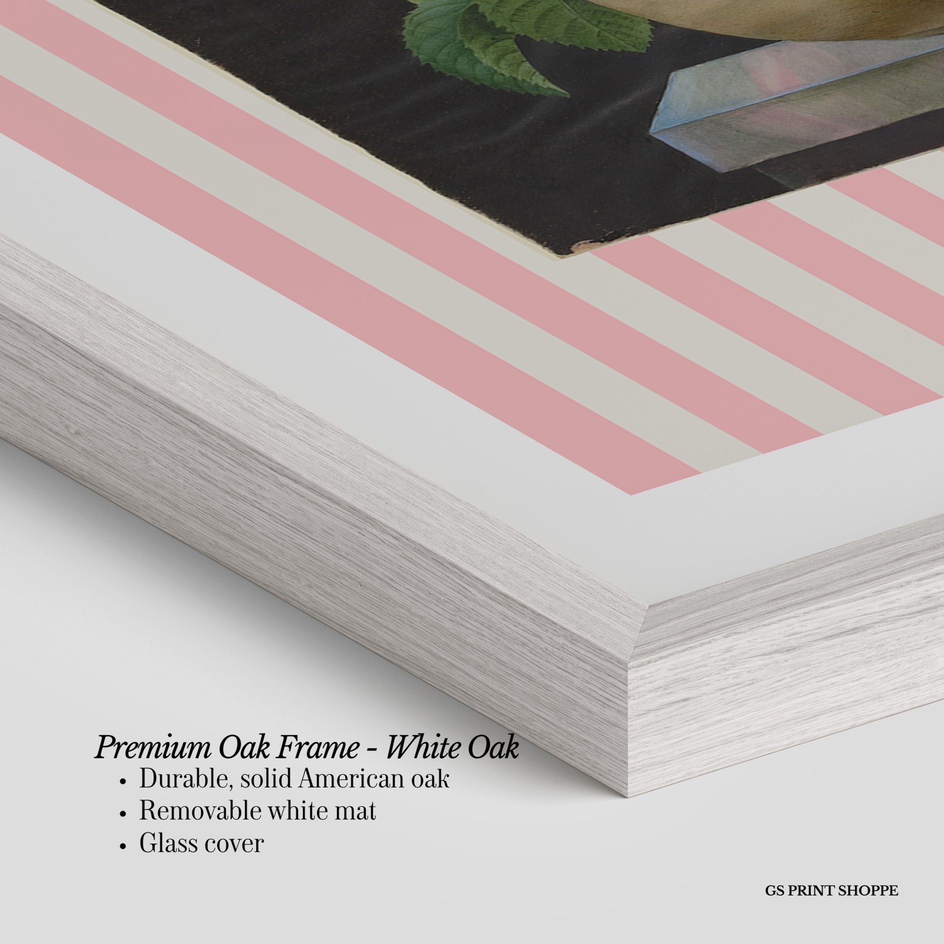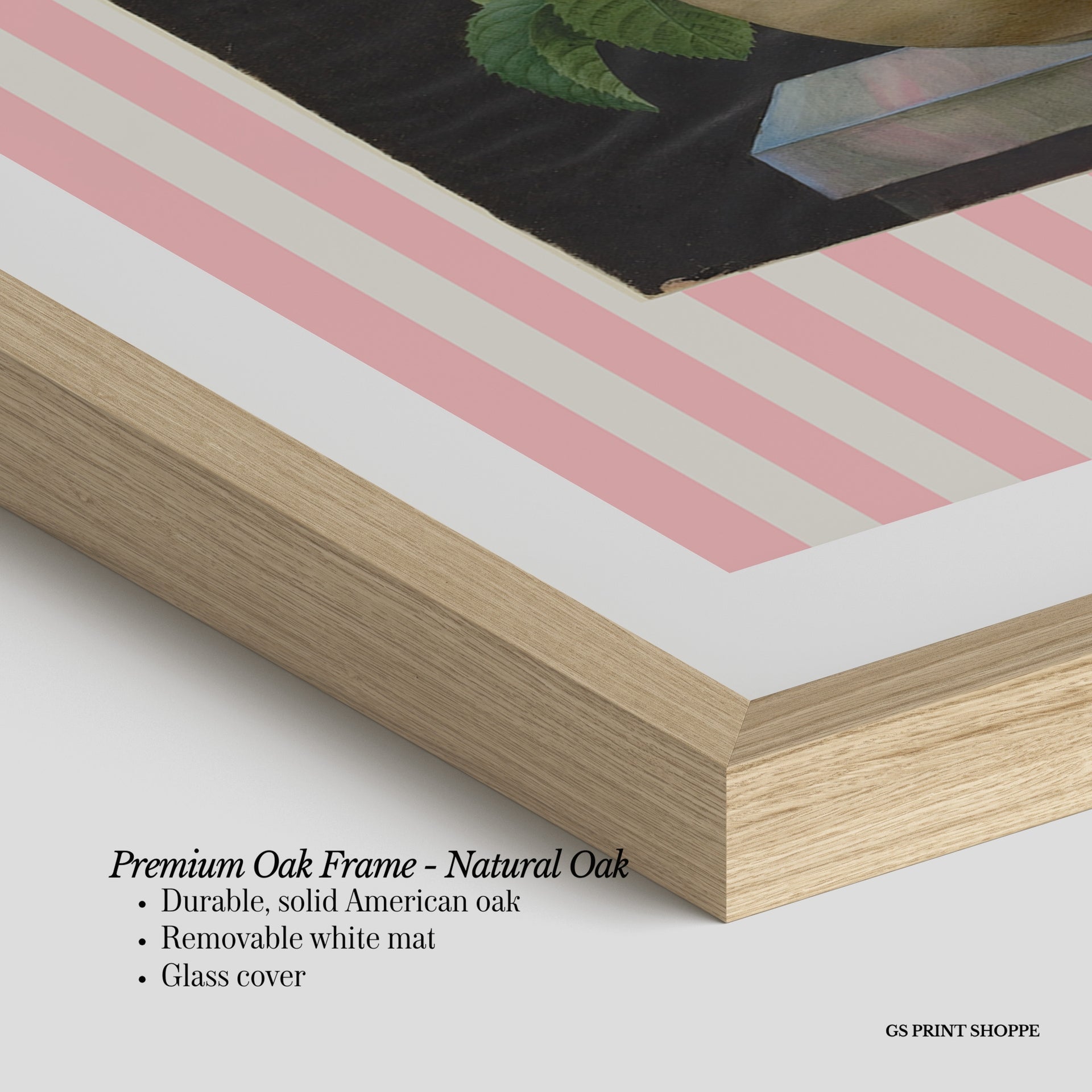 Premium Oak Frame: Our premium oak frame is crafted from solid American oak, offering a warm, natural feel with a high-end finish. We complete this elevated offering with a bright white removable mat and real glass for a versatile and polished look.