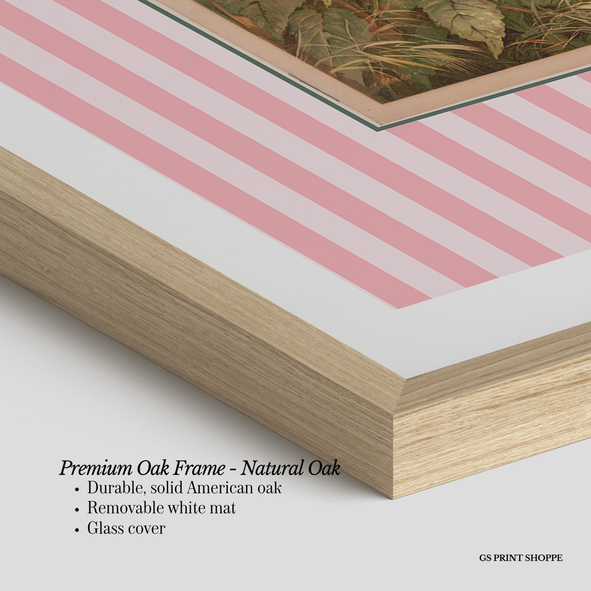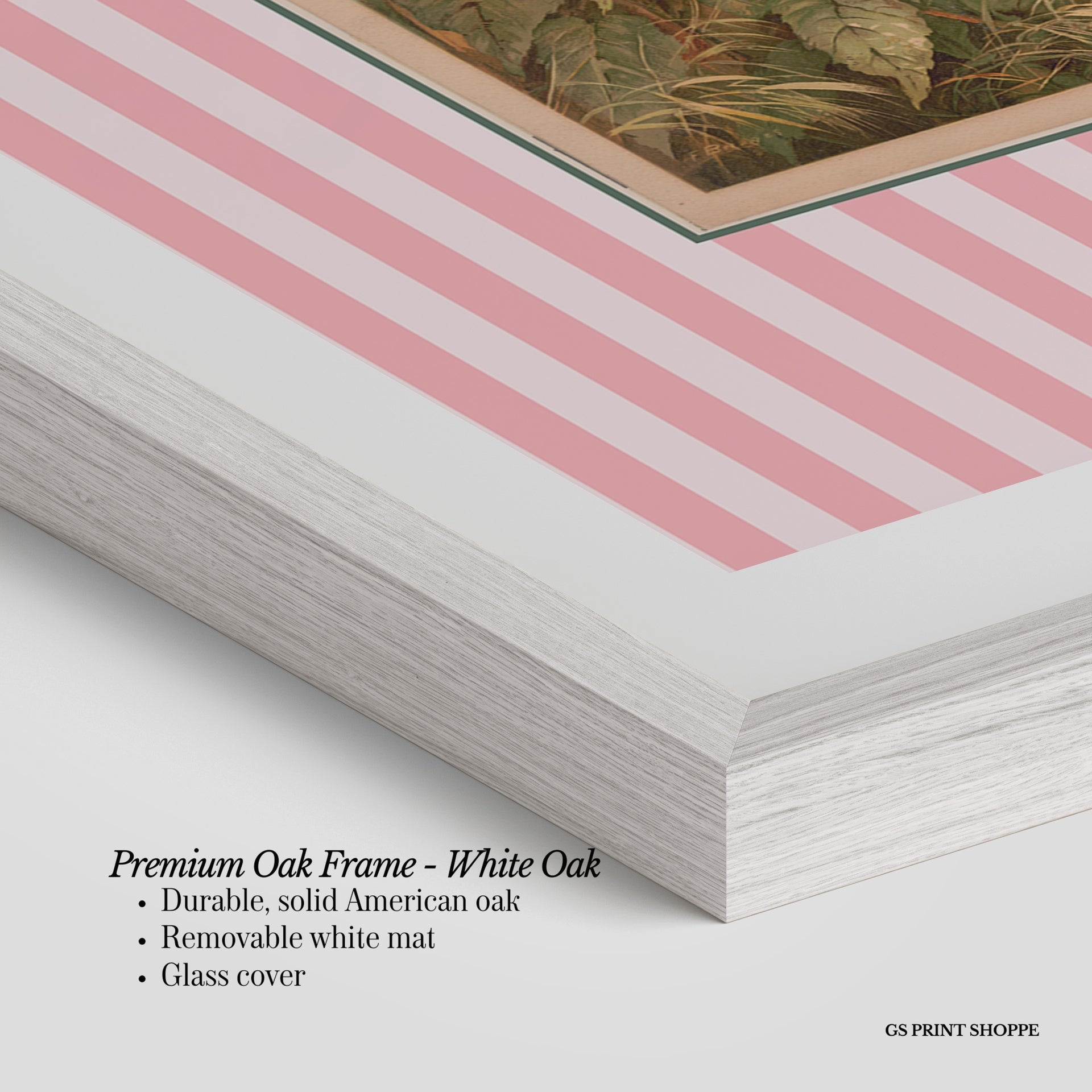 Premium Oak Frame: Our premium oak frame is crafted from solid American oak, offering a warm, natural feel with a high-end finish. We complete this elevated offering with a bright white removable mat and real glass for a versatile and polished look.