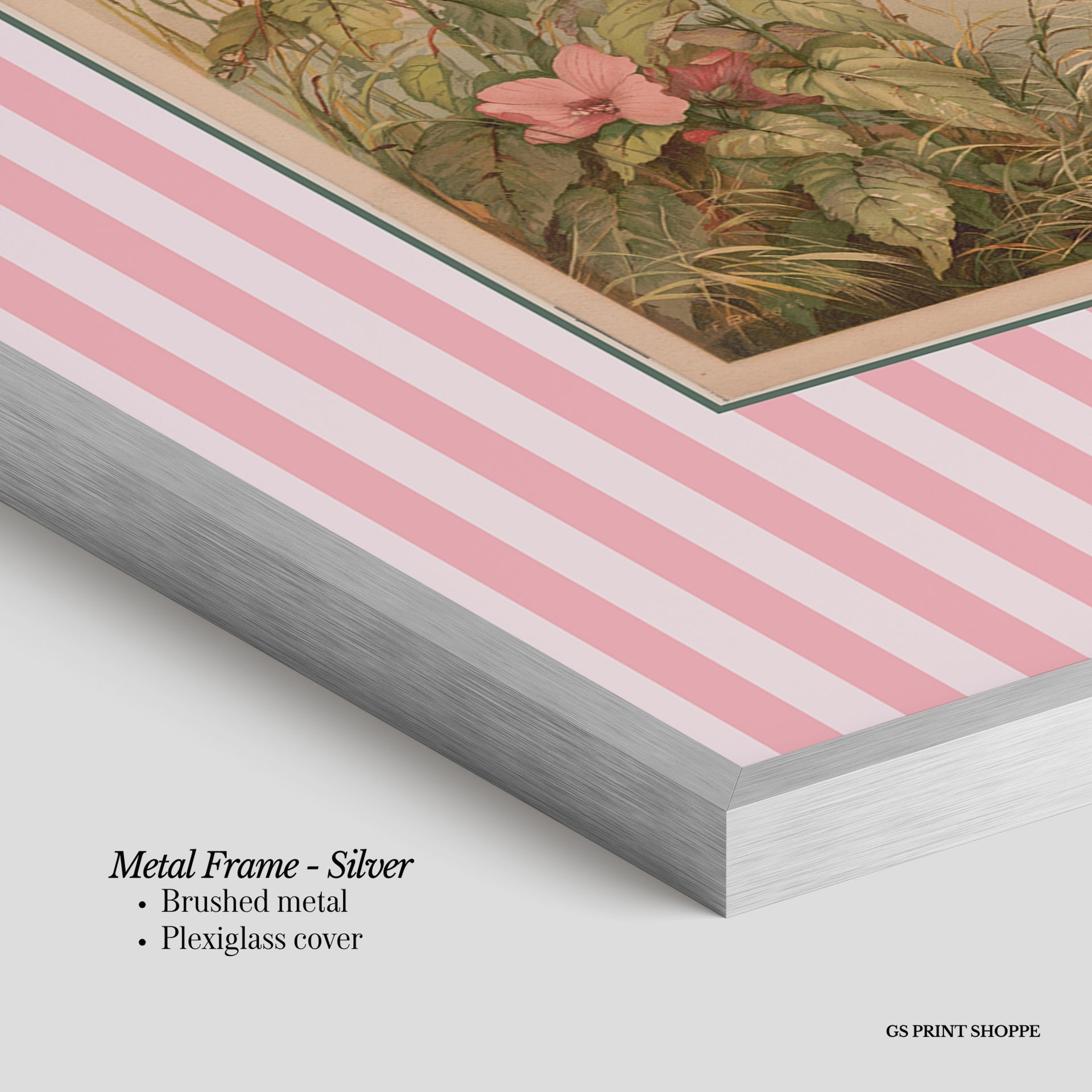 Metal Frame: Sleek and modern, our metal frame is crafted with brushed metal for a polished finish. It comes with durable plexiglass and sturdy metal hangers for horizontal or vertical display.