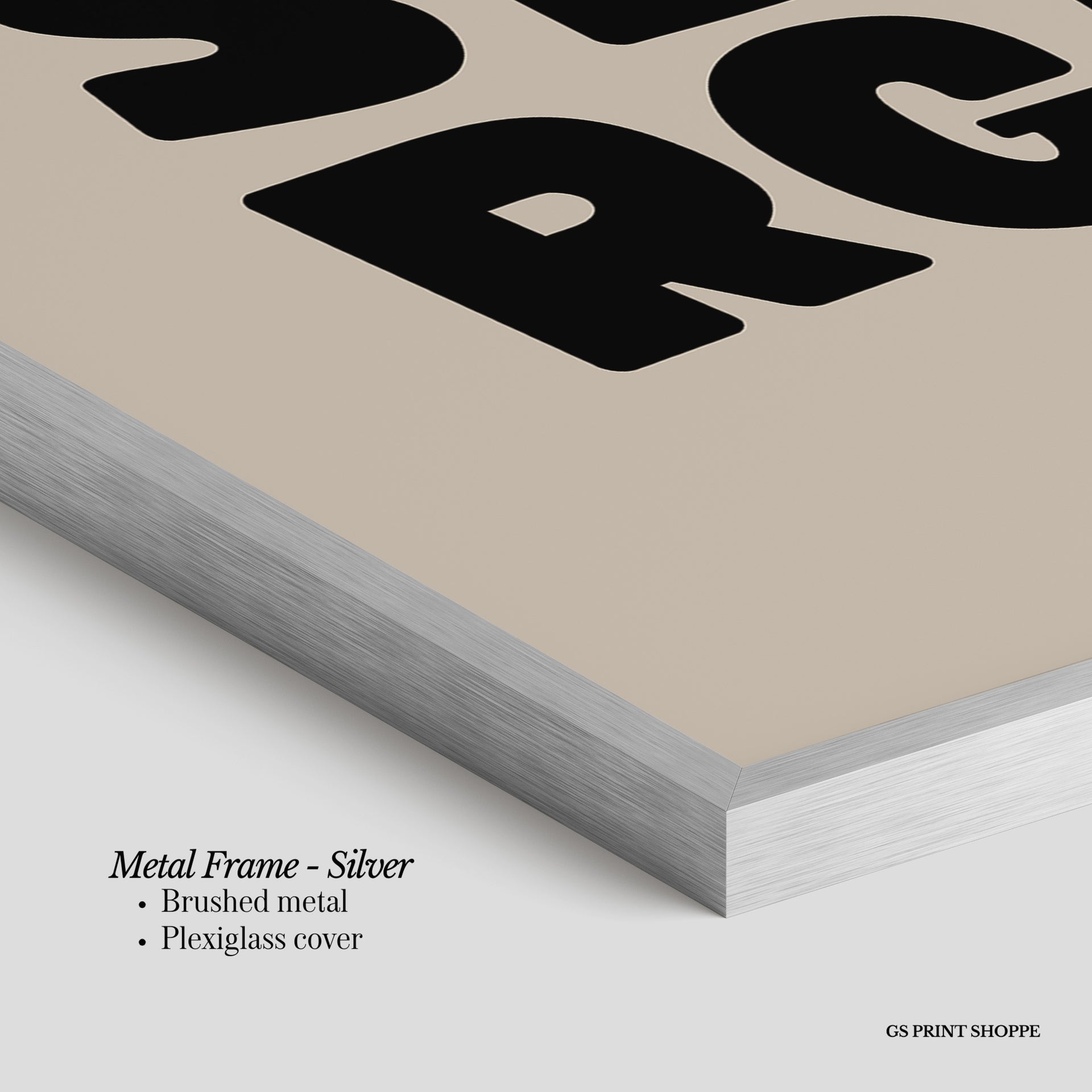 Metal Frame: Sleek and modern, our metal frame is crafted with brushed metal for a polished finish. It comes with durable plexiglass and sturdy metal hangers for horizontal or vertical display.