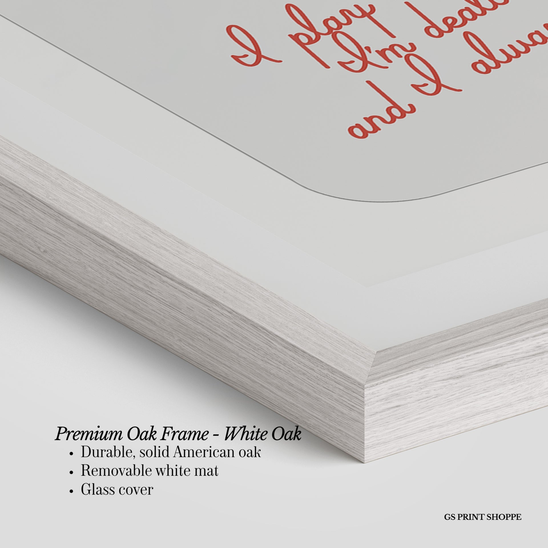 Premium Oak Frame: Our premium oak frame is crafted from solid American oak, offering a warm, natural feel with a high-end finish. We complete this elevated offering with a bright white removable mat and real glass for a versatile and polished look.