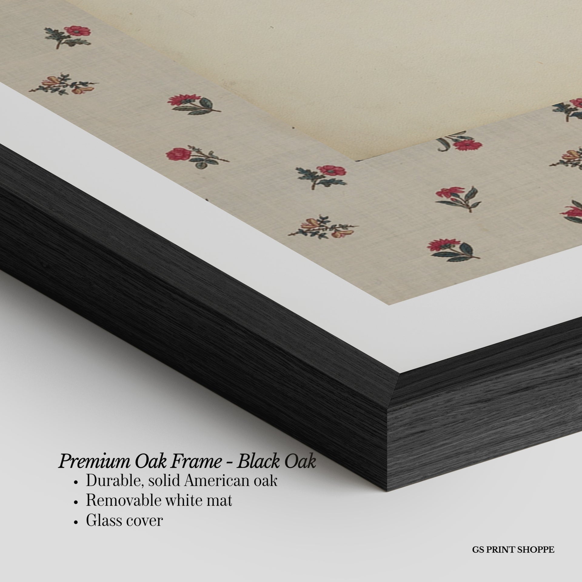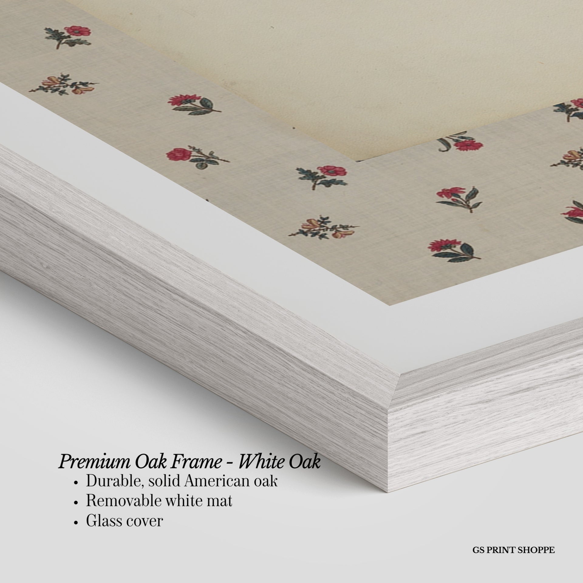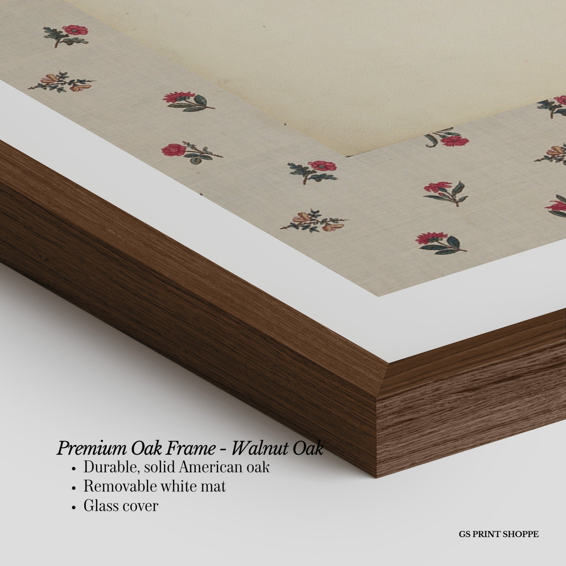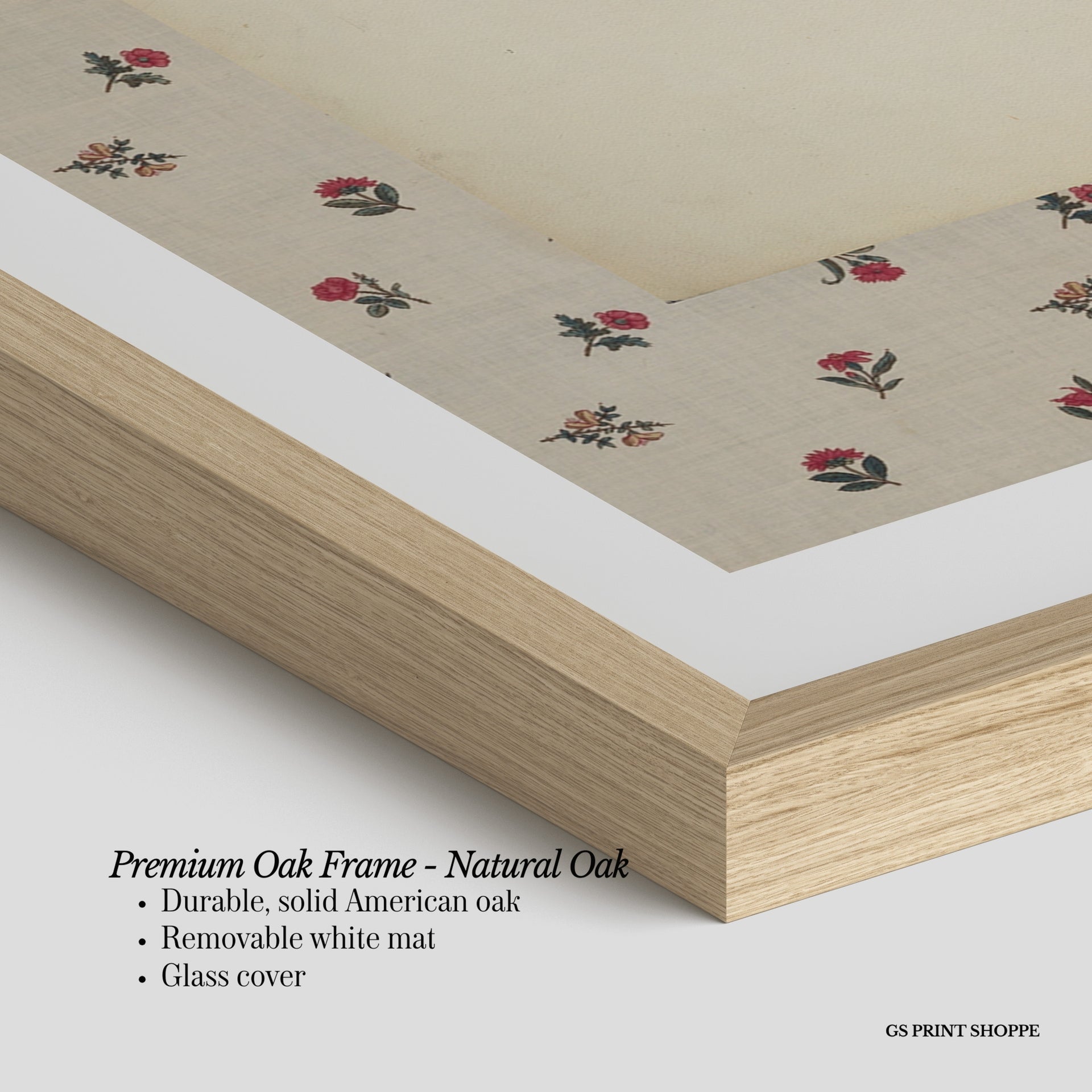 Premium Oak Frame: Our premium oak frame is crafted from solid American oak, offering a warm, natural feel with a high-end finish. We complete this elevated offering with a bright white removable mat and real glass for a versatile and polished look.