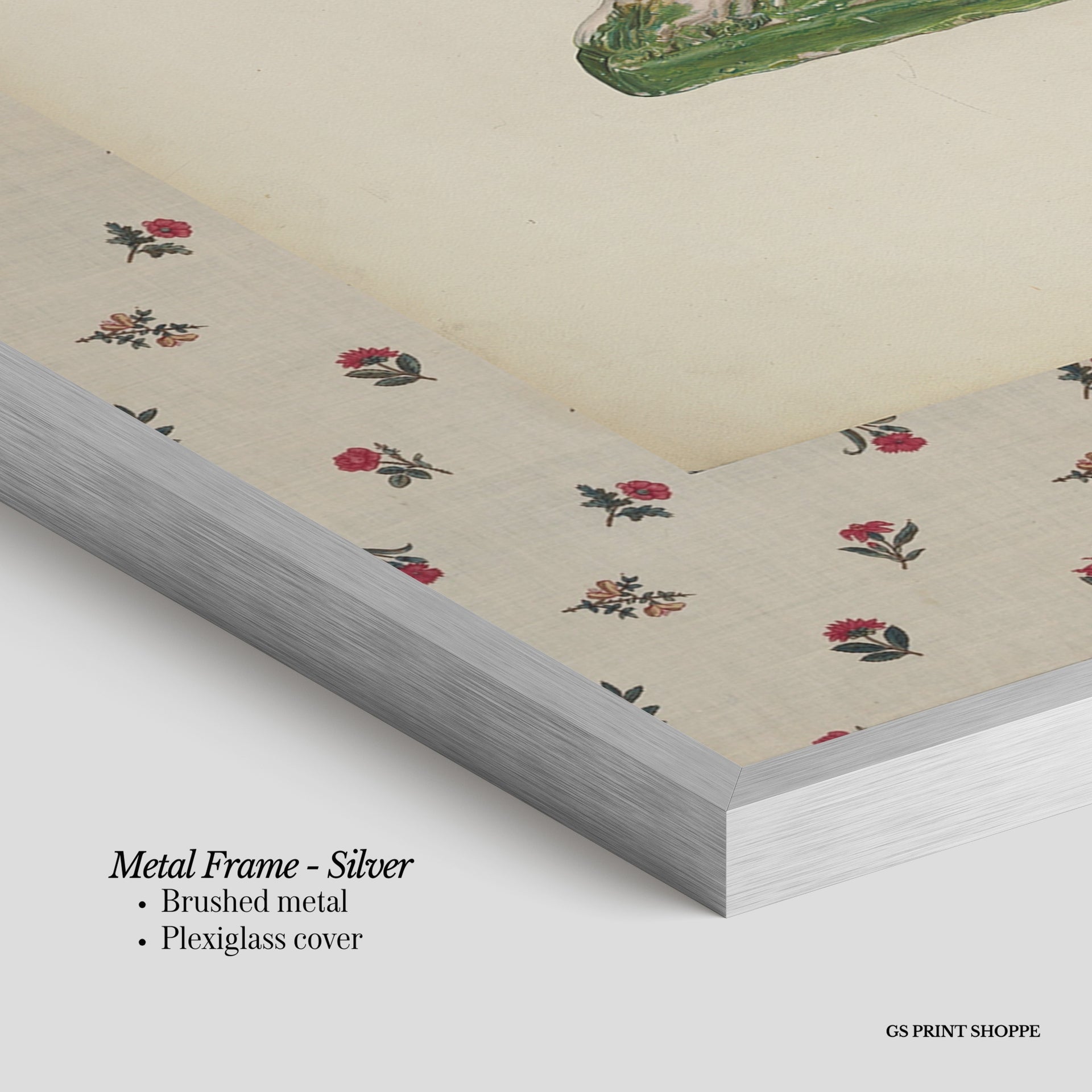Metal Frame: Sleek and modern, our metal frame is crafted with brushed metal for a polished finish. It comes with durable plexiglass and sturdy metal hangers for horizontal or vertical display.