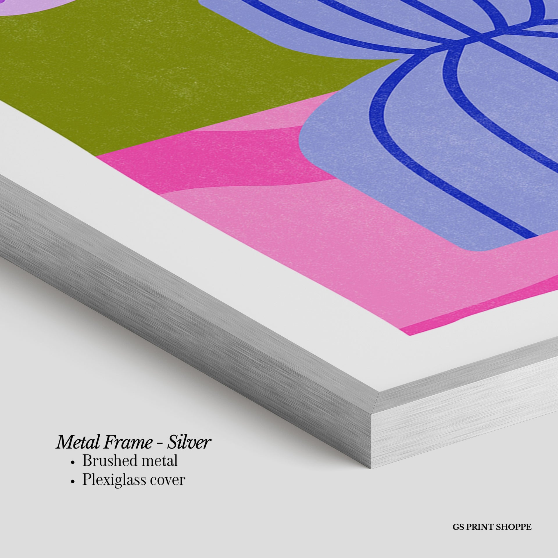 Metal Frame: Sleek and modern, our metal frame is crafted with brushed metal for a polished finish. It comes with durable plexiglass and sturdy metal hangers for horizontal or vertical display.