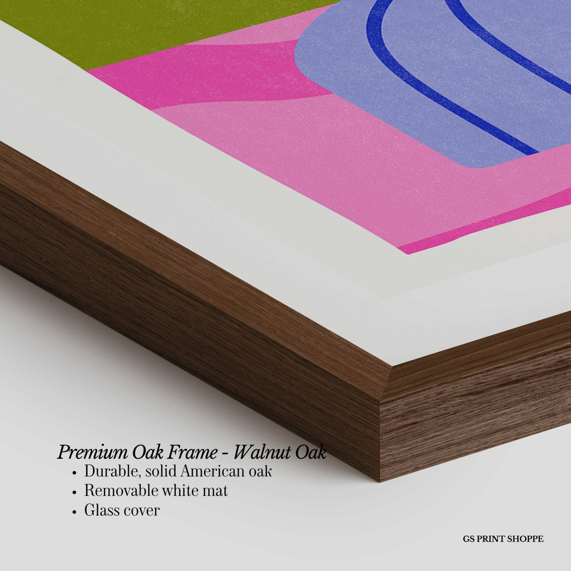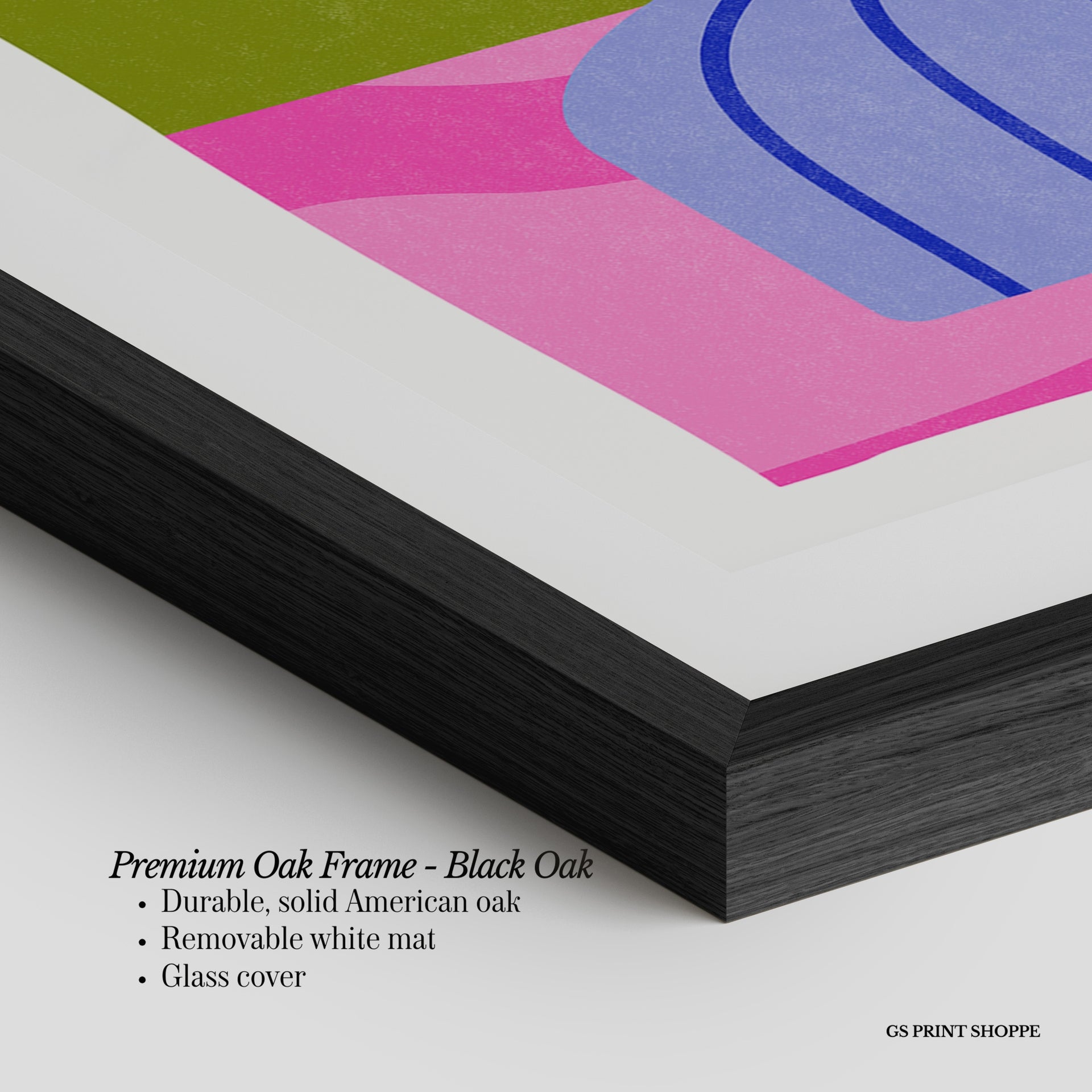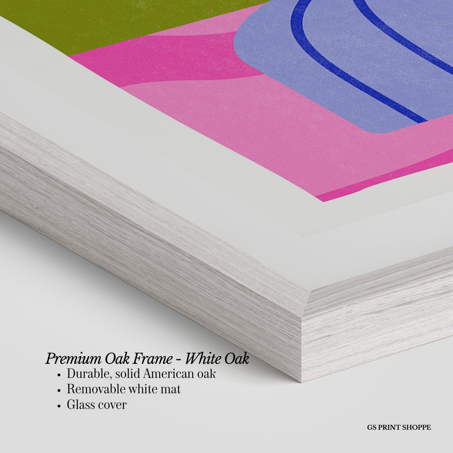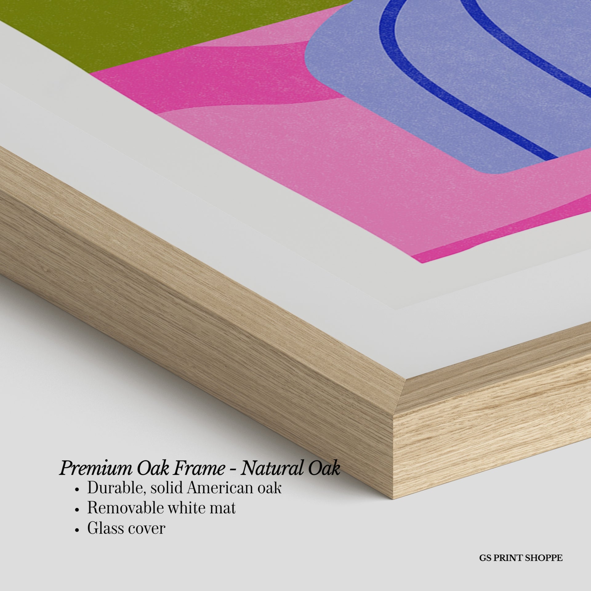 Premium Oak Frame: Our premium oak frame is crafted from solid American oak, offering a warm, natural feel with a high-end finish. We complete this elevated offering with a bright white removable mat and real glass for a versatile and polished look.