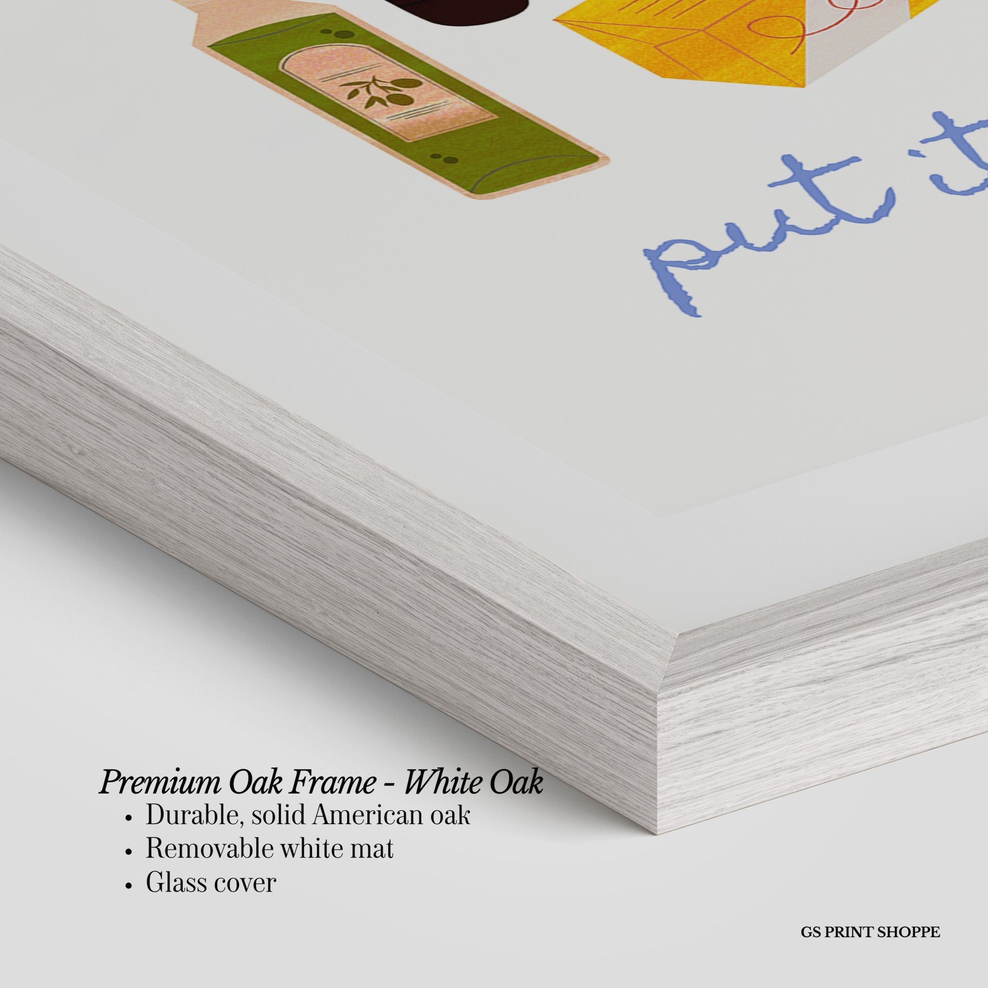 Premium Oak Frame: Our premium oak frame is crafted from solid American oak, offering a warm, natural feel with a high-end finish. We complete this elevated offering with a bright white removable mat and real glass for a versatile and polished look.