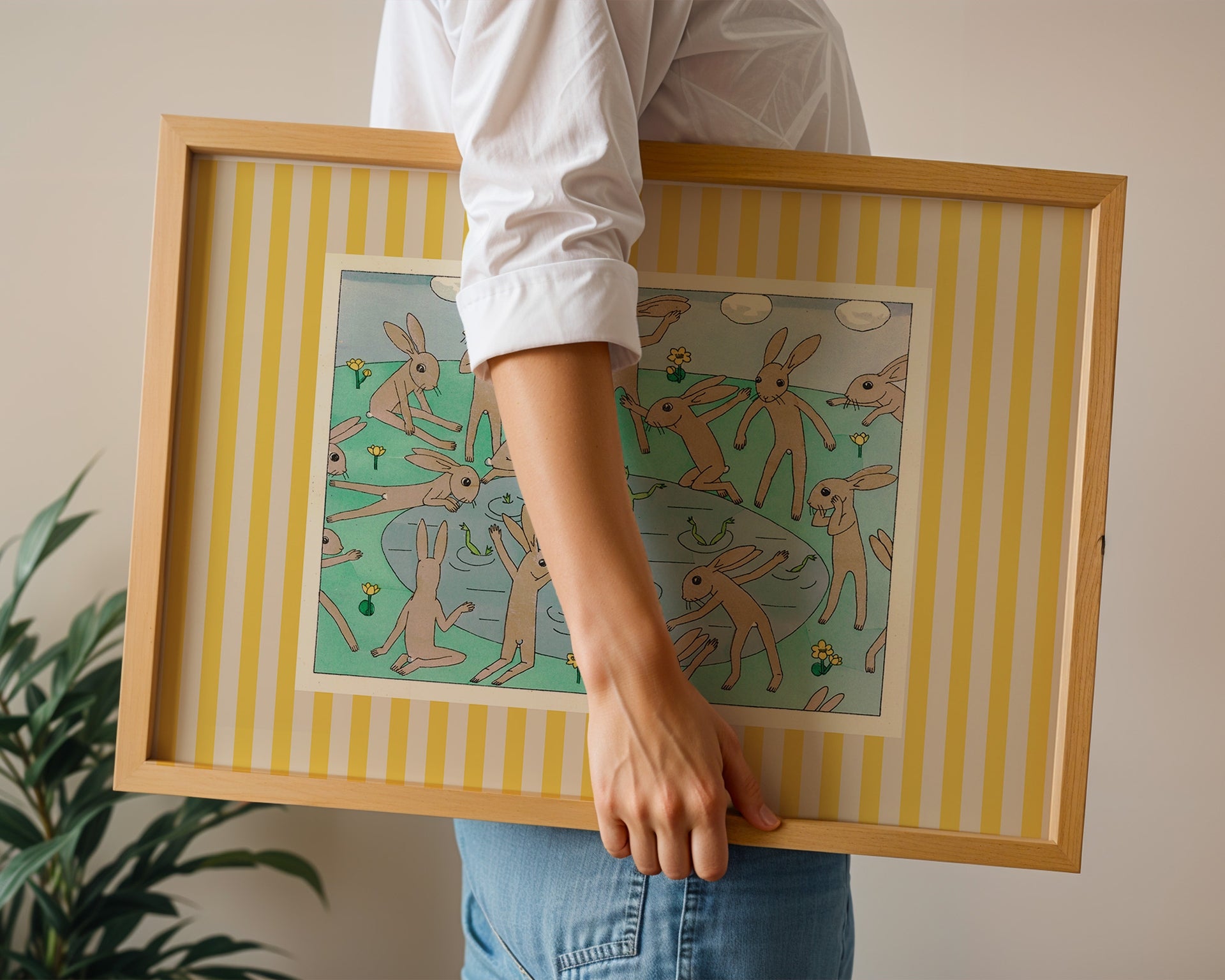 Rabbit and Frogs Horizontal Art Print