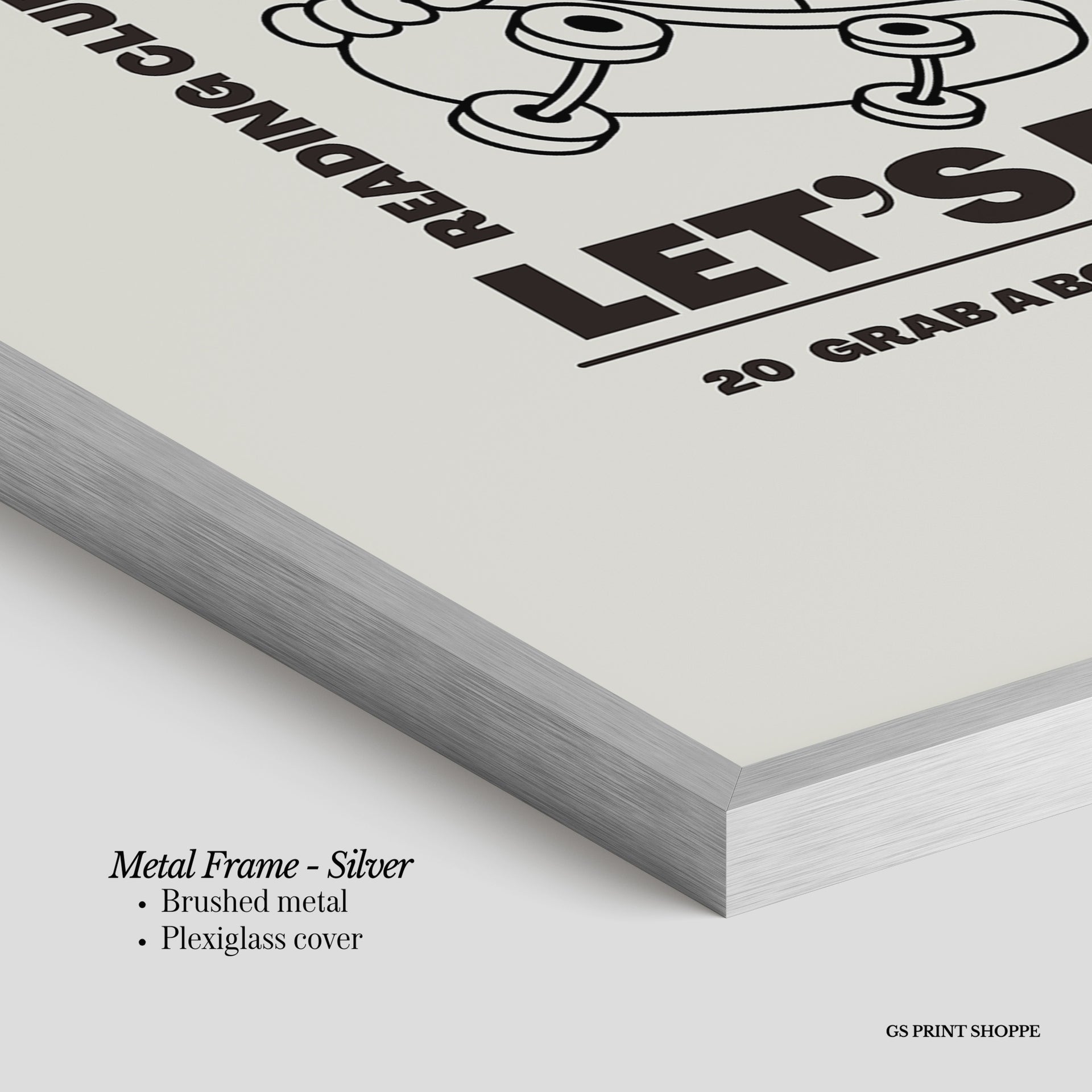 Metal Frame: Sleek and modern, our metal frame is crafted with brushed metal for a polished finish. It comes with durable plexiglass and sturdy metal hangers for horizontal or vertical display.