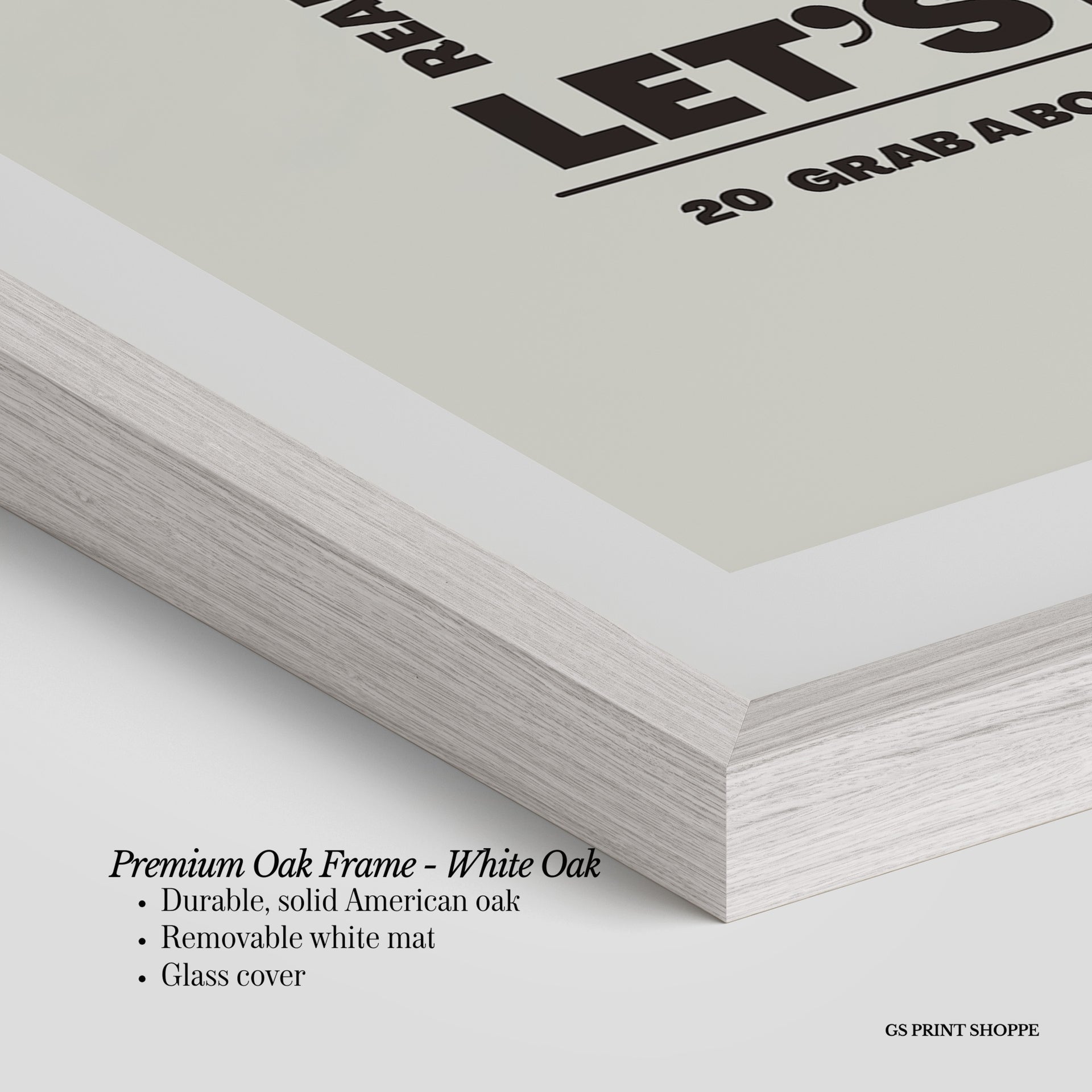 Premium Oak Frame: Our premium oak frame is crafted from solid American oak, offering a warm, natural feel with a high-end finish. We complete this elevated offering with a bright white removable mat and real glass for a versatile and polished look.