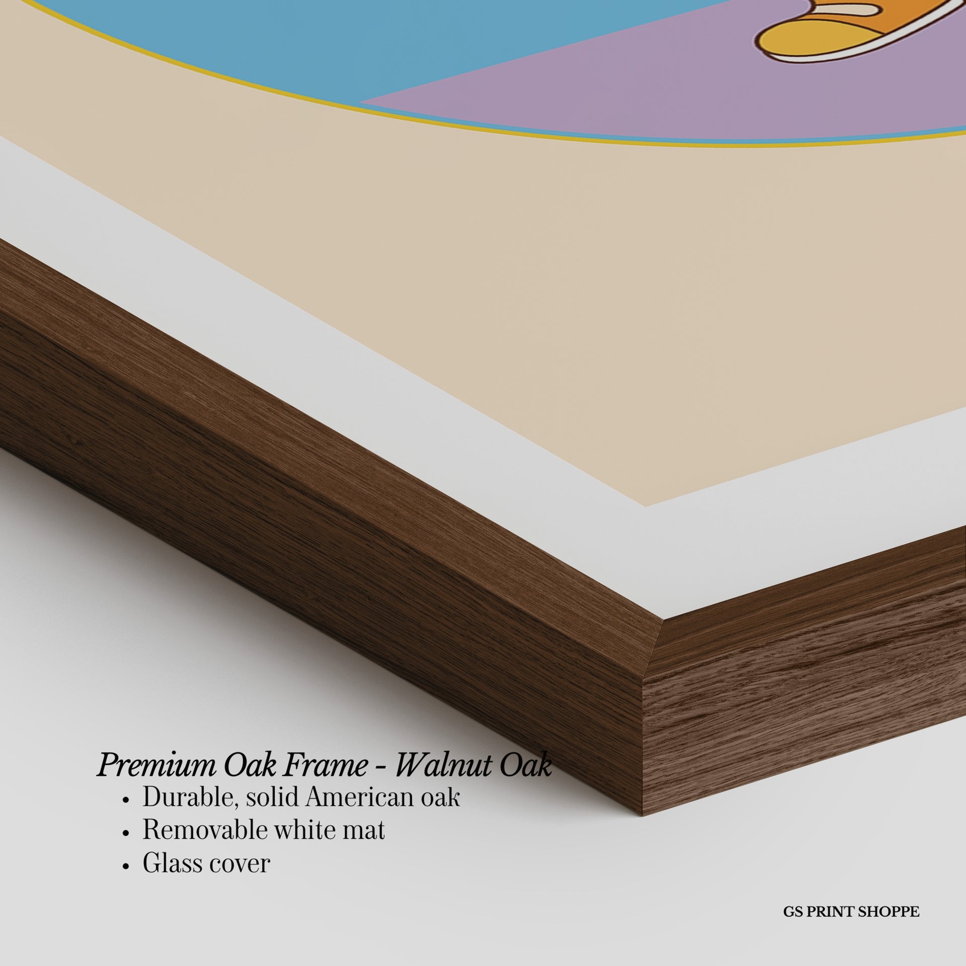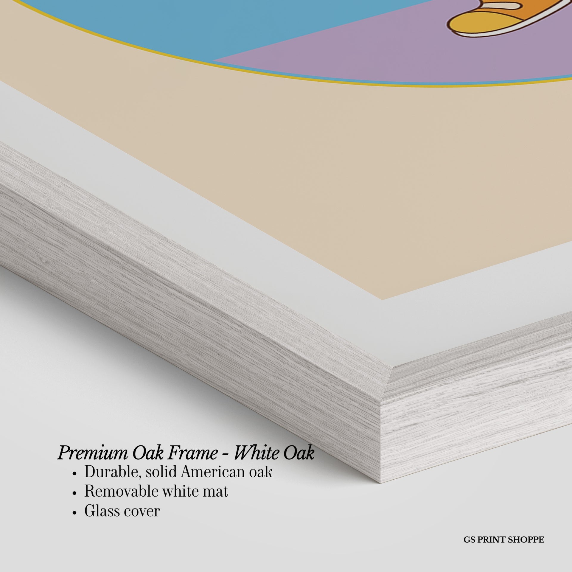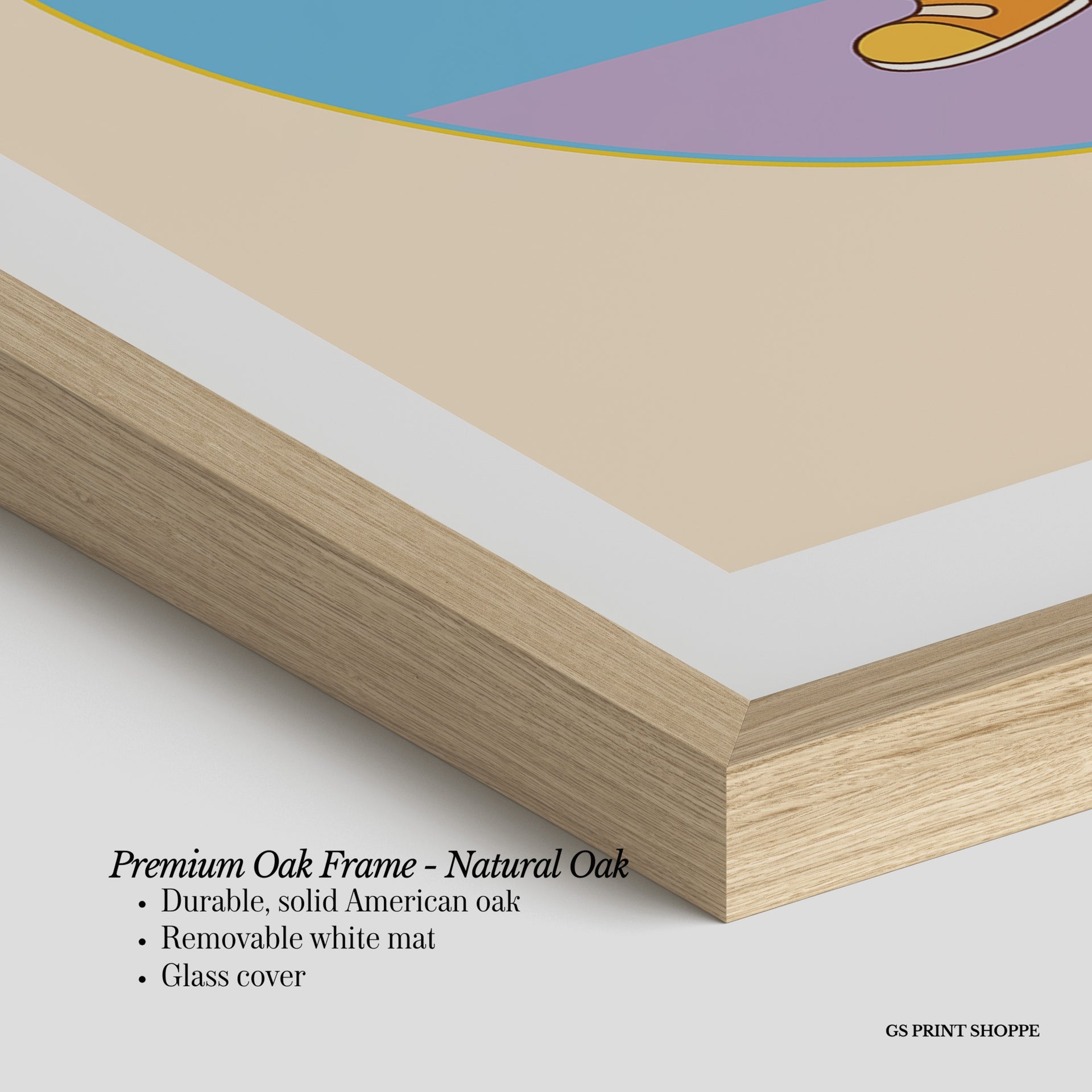 Premium Oak Frame: Our premium oak frame is crafted from solid American oak, offering a warm, natural feel with a high-end finish. We complete this elevated offering with a bright white removable mat and real glass for a versatile and polished look.