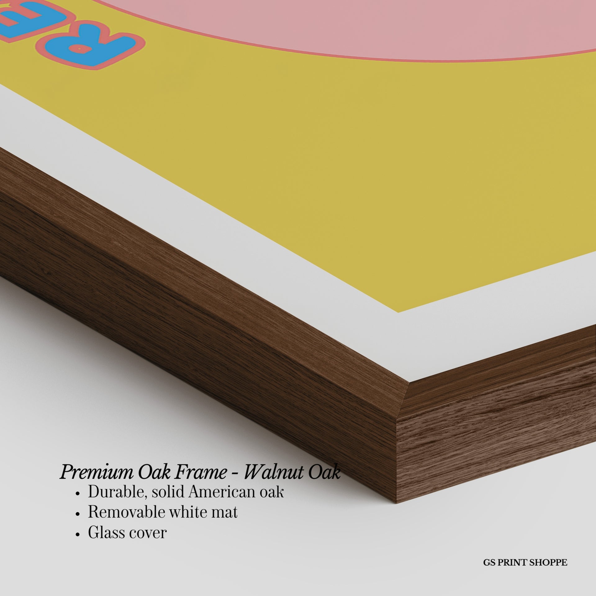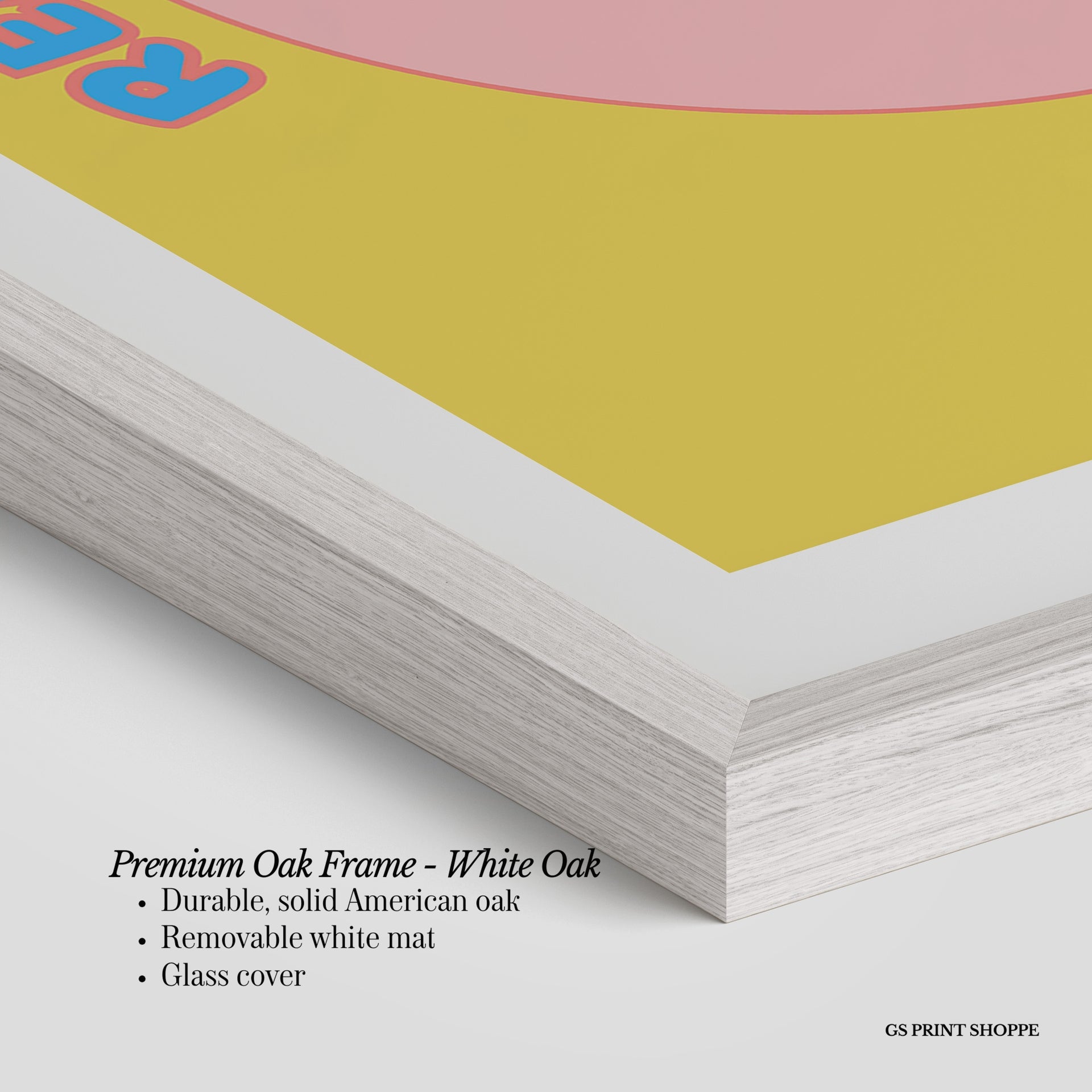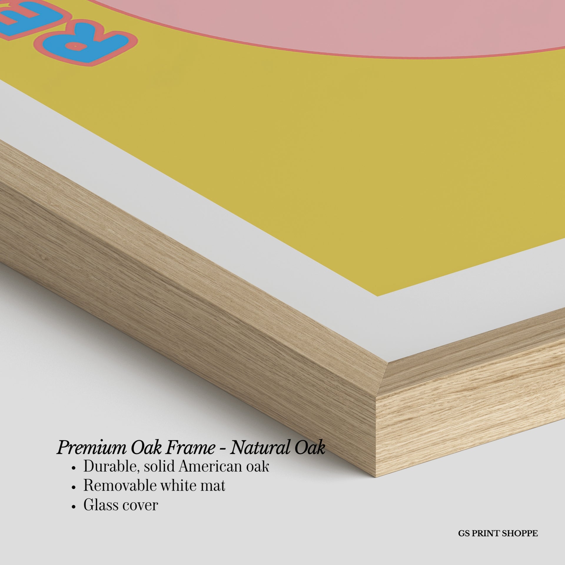 Premium Oak Frame: Our premium oak frame is crafted from solid American oak, offering a warm, natural feel with a high-end finish. We complete this elevated offering with a bright white removable mat and real glass for a versatile and polished look.