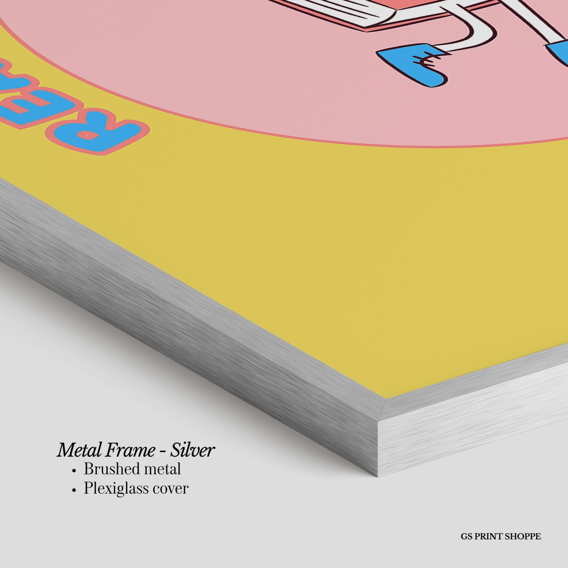 Metal Frame: Sleek and modern, our metal frame is crafted with brushed metal for a polished finish. It comes with durable plexiglass and sturdy metal hangers for horizontal or vertical display.