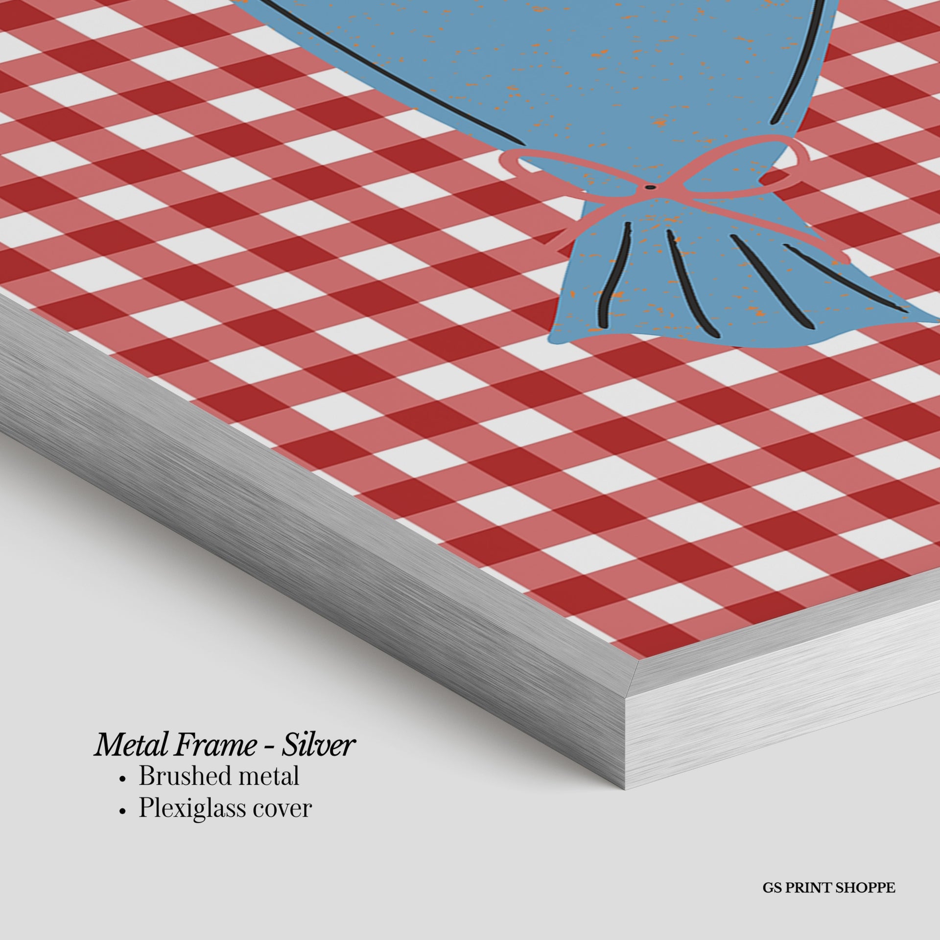 Metal Frame: Sleek and modern, our metal frame is crafted with brushed metal for a polished finish. It comes with durable plexiglass and sturdy metal hangers for horizontal or vertical display.