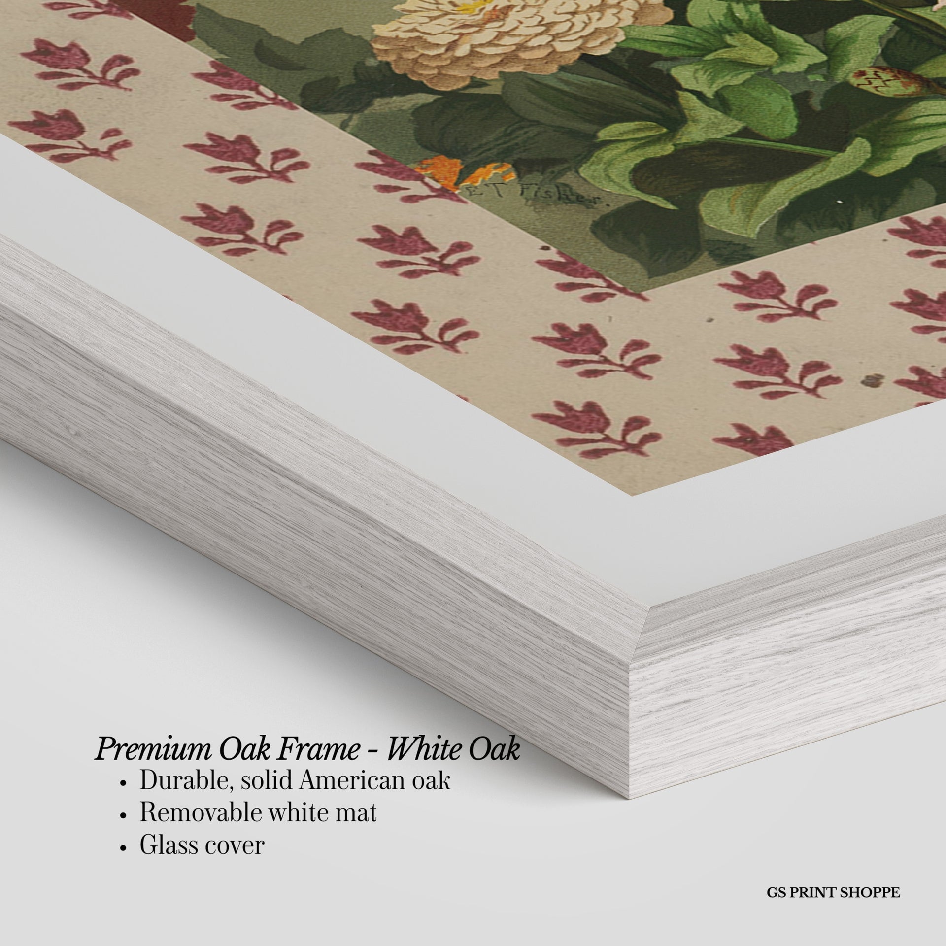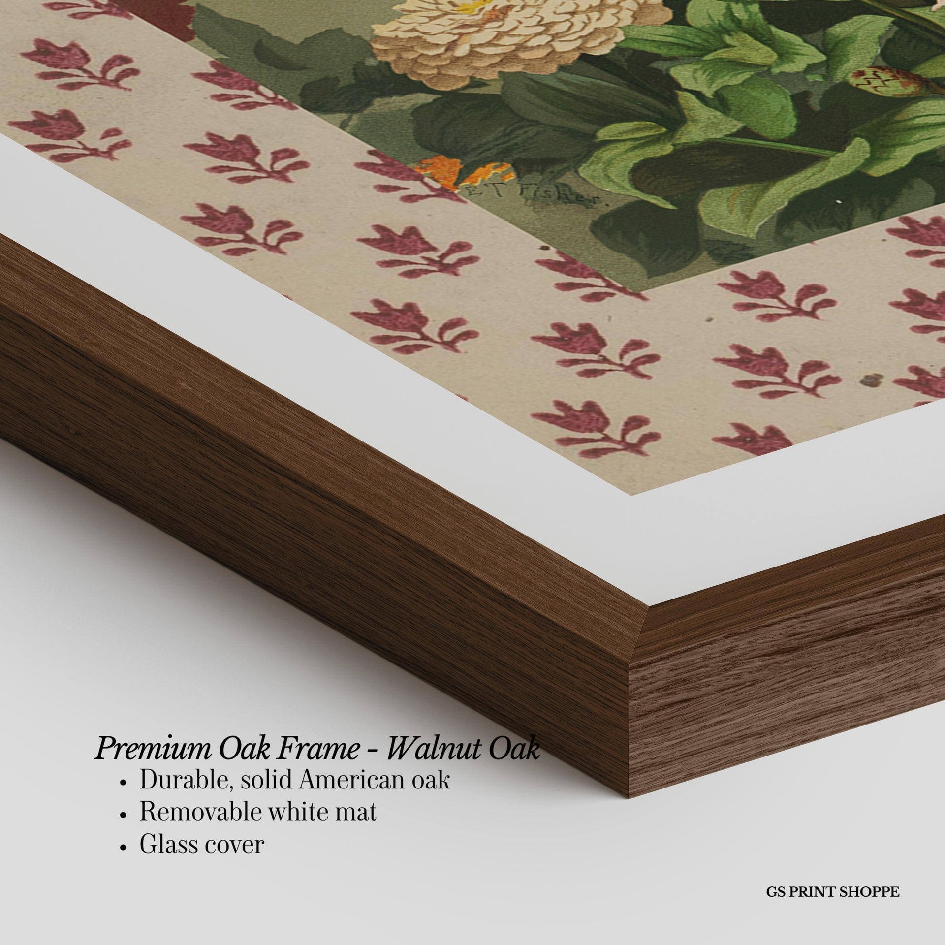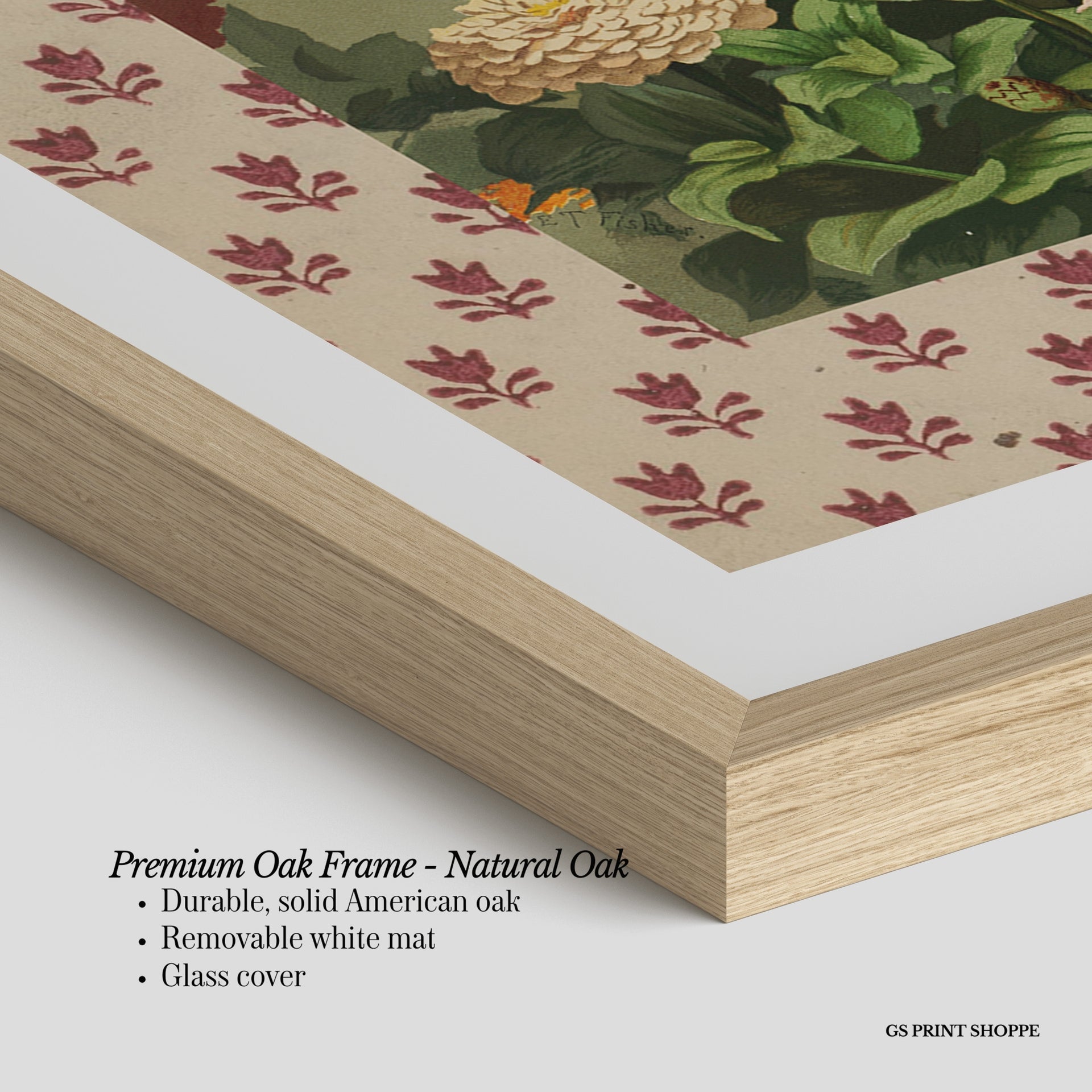 Premium Oak Frame: Our premium oak frame is crafted from solid American oak, offering a warm, natural feel with a high-end finish. We complete this elevated offering with a bright white removable mat and real glass for a versatile and polished look.