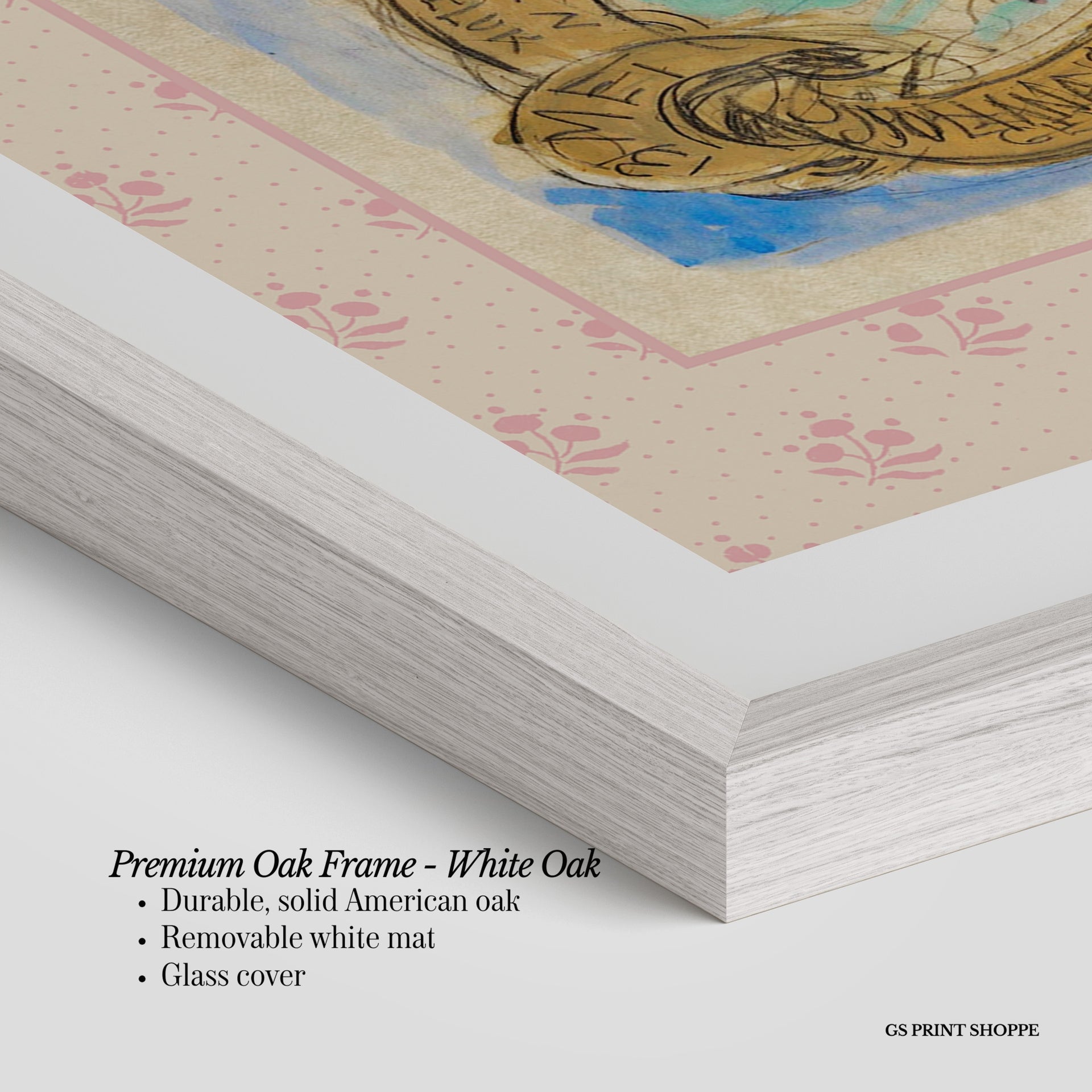 Premium Oak Frame: Our premium oak frame is crafted from solid American oak, offering a warm, natural feel with a high-end finish. We complete this elevated offering with a bright white removable mat and real glass for a versatile and polished look.