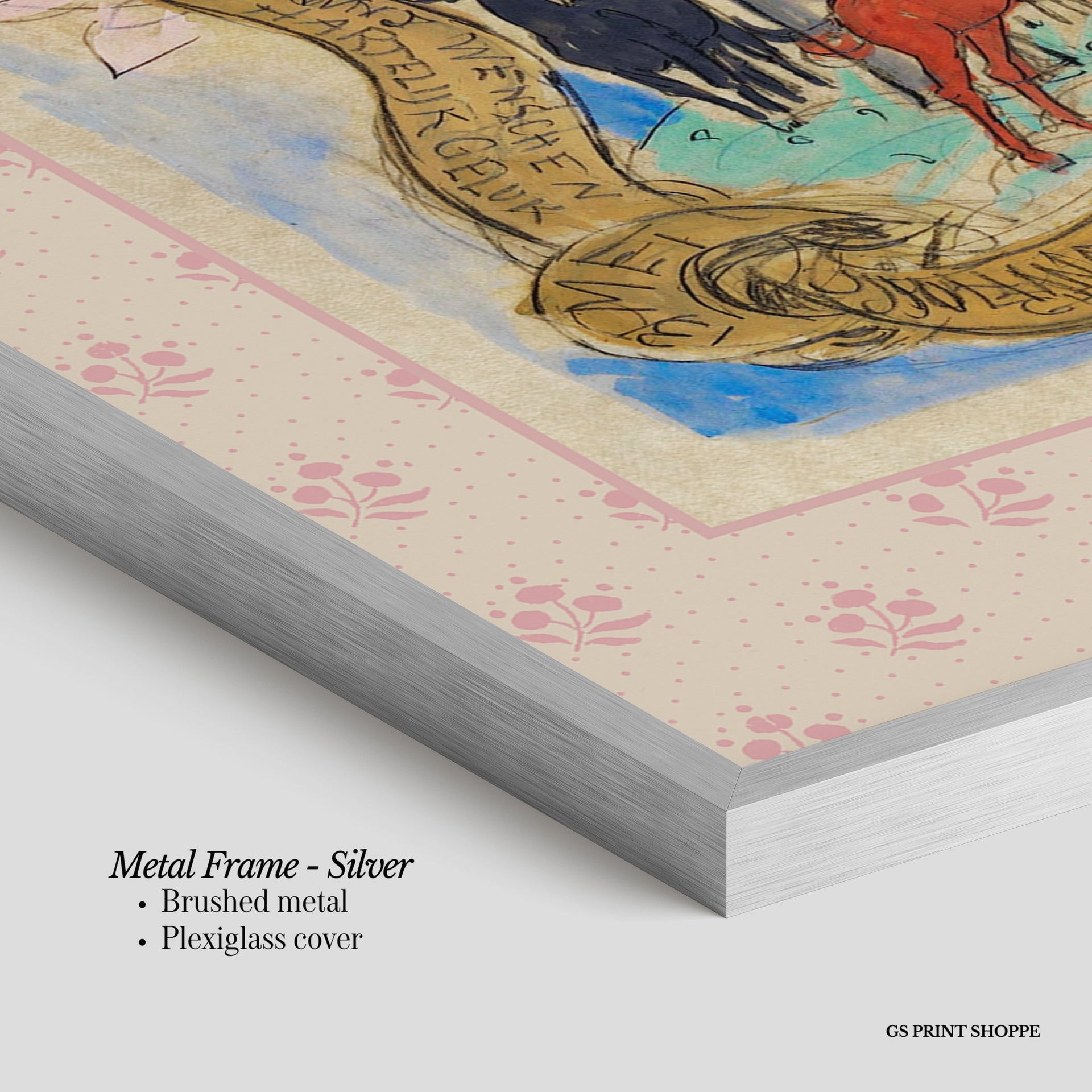 Metal Frame: Sleek and modern, our metal frame is crafted with brushed metal for a polished finish. It comes with durable plexiglass and sturdy metal hangers for horizontal or vertical display.