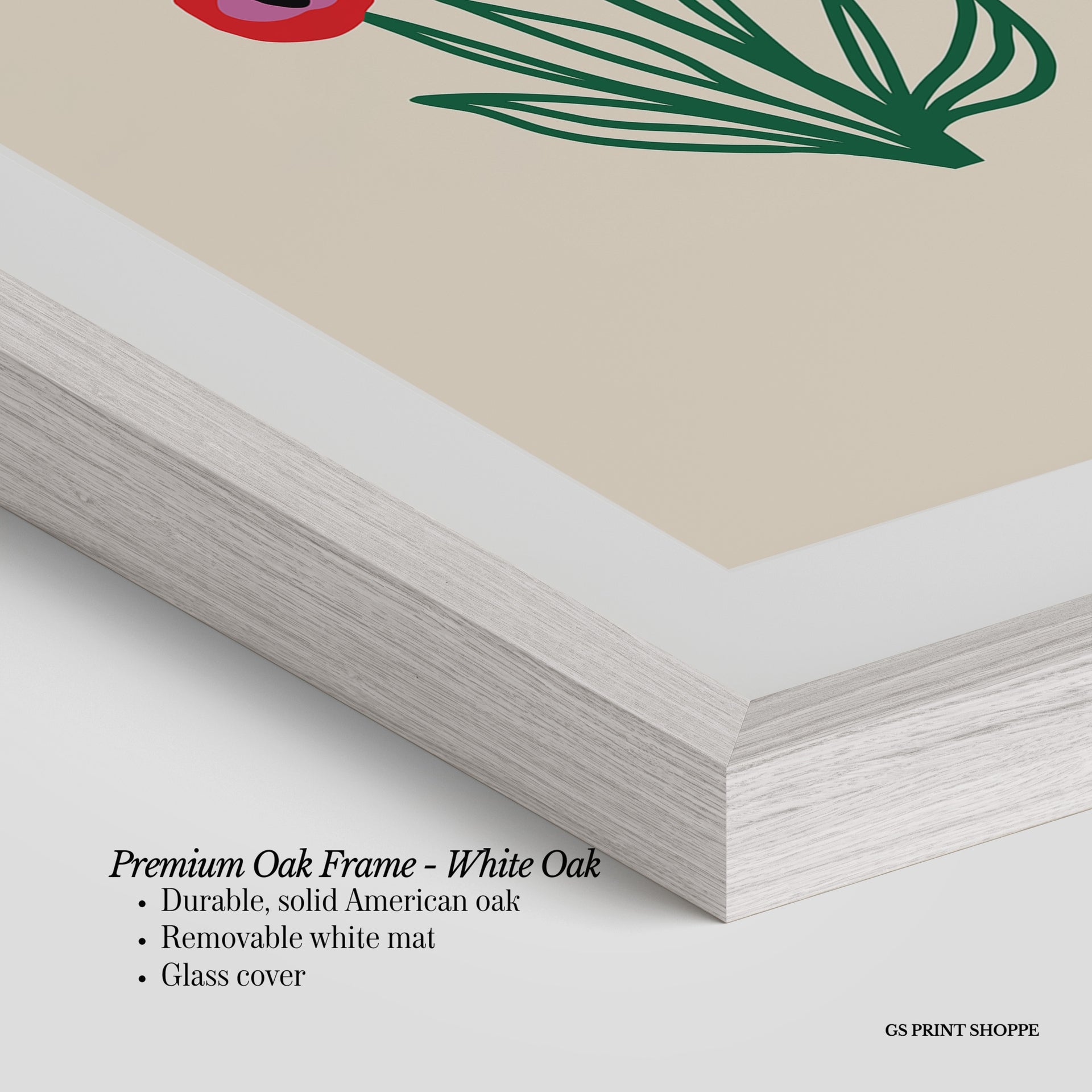Premium Oak Frame: Our premium oak frame is crafted from solid American oak, offering a warm, natural feel with a high-end finish. We complete this elevated offering with a bright white removable mat and real glass for a versatile and polished look.