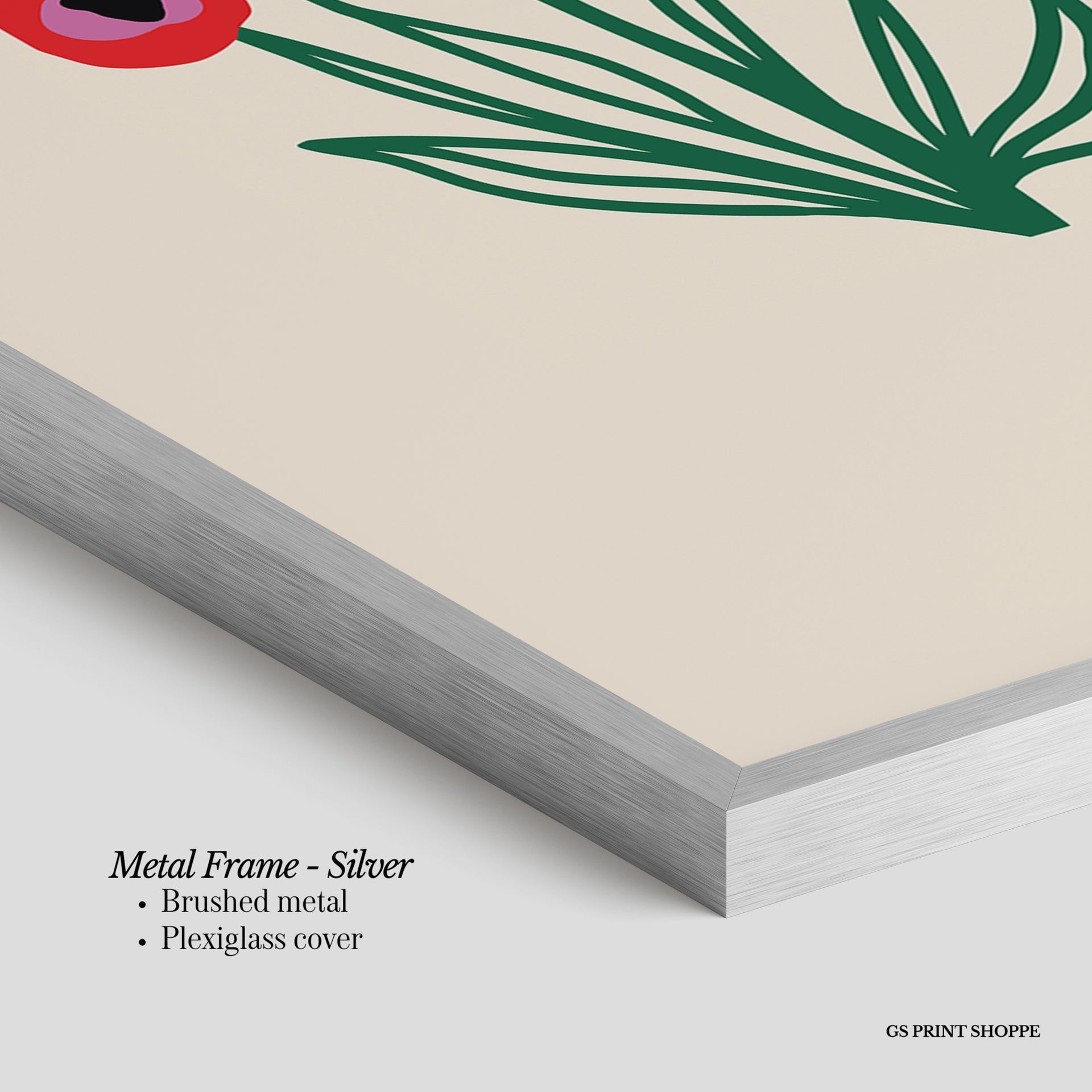 Metal Frame: Sleek and modern, our metal frame is crafted with brushed metal for a polished finish. It comes with durable plexiglass and sturdy metal hangers for horizontal or vertical display.