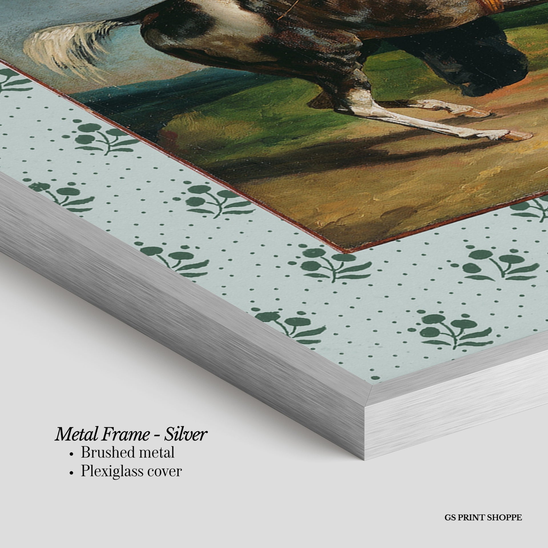Metal Frame: Sleek and modern, our metal frame is crafted with brushed metal for a polished finish. It comes with durable plexiglass and sturdy metal hangers for horizontal or vertical display.