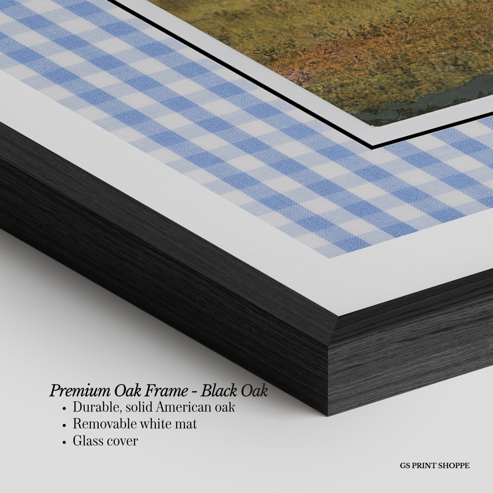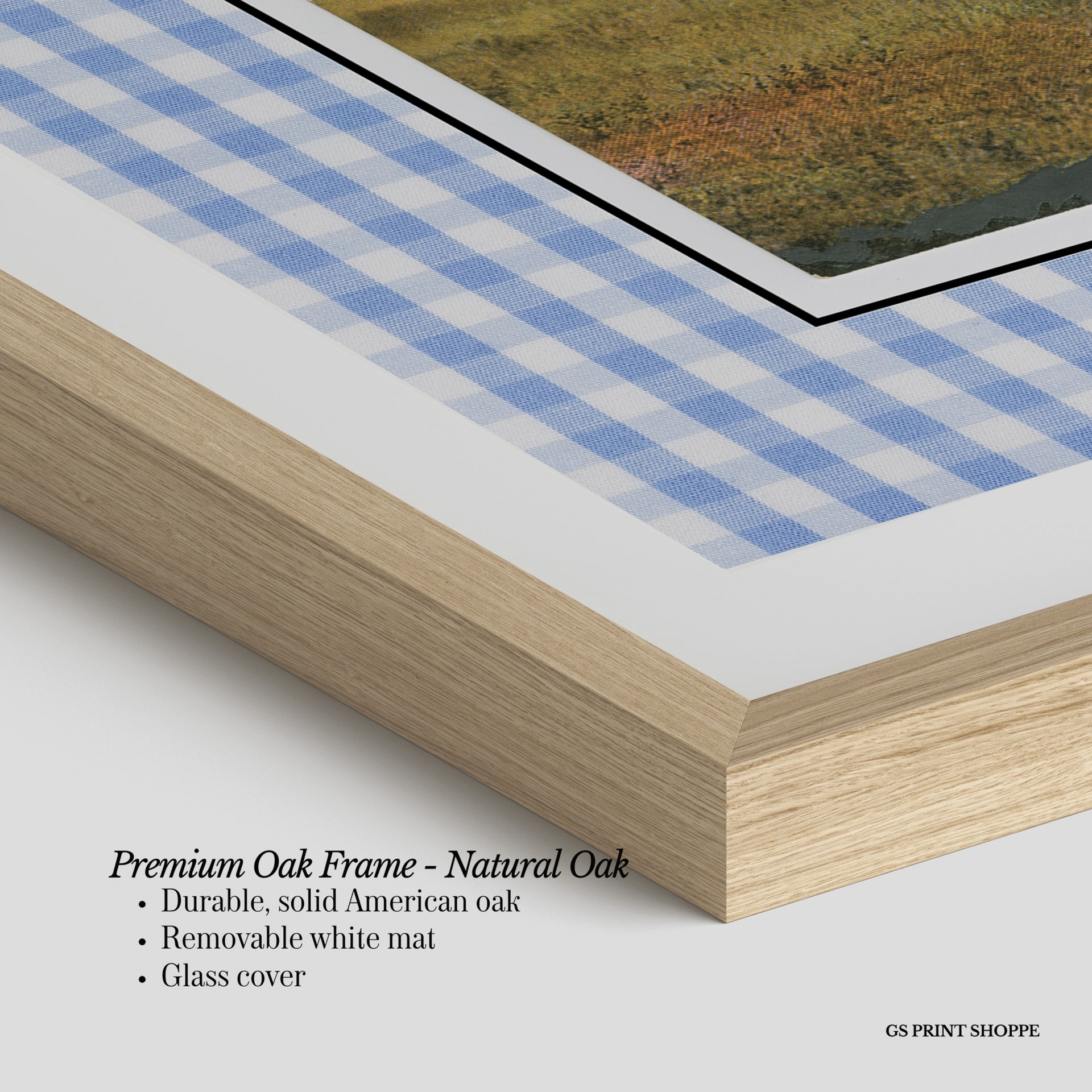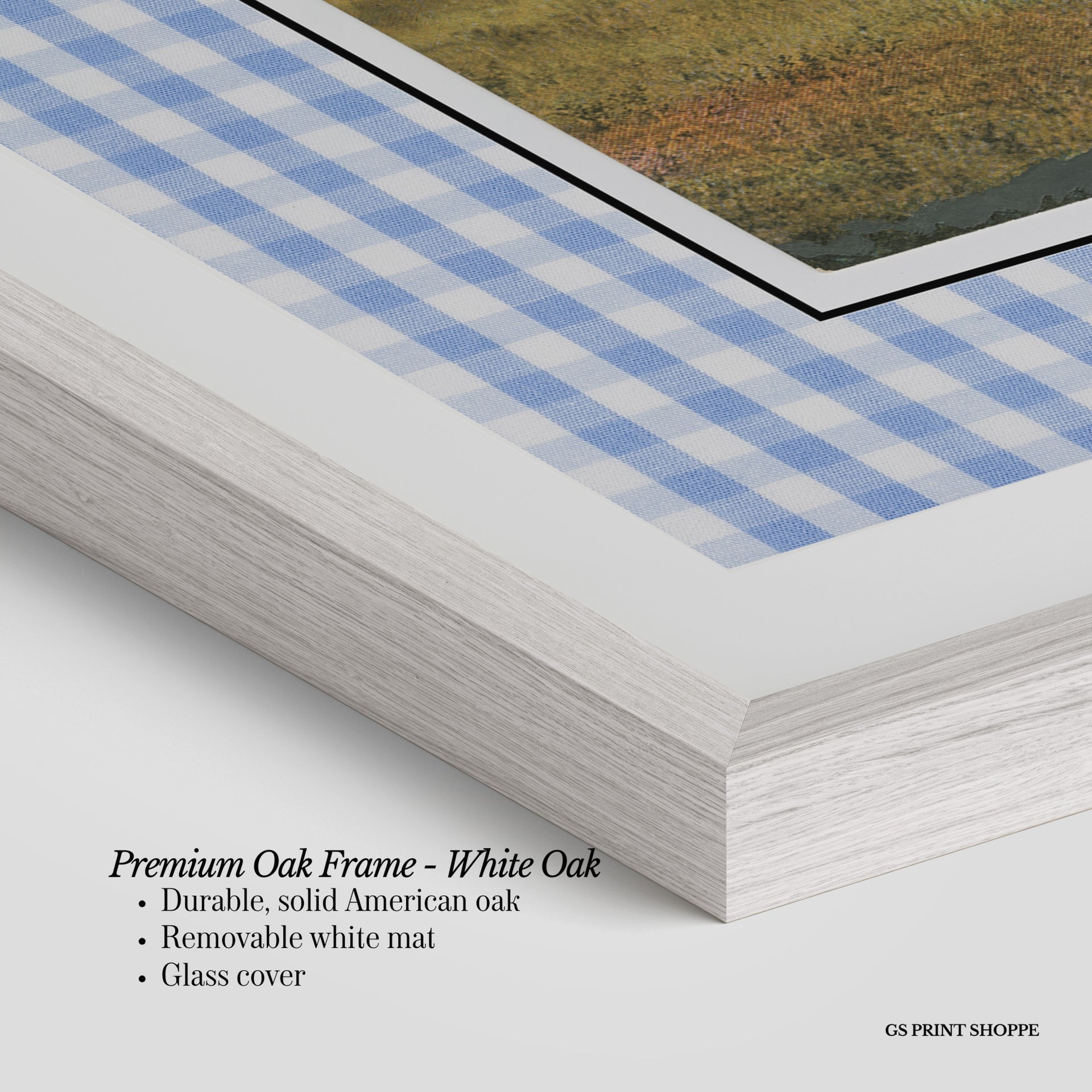 Premium Oak Frame: Our premium oak frame is crafted from solid American oak, offering a warm, natural feel with a high-end finish. We complete this elevated offering with a bright white removable mat and real glass for a versatile and polished look.