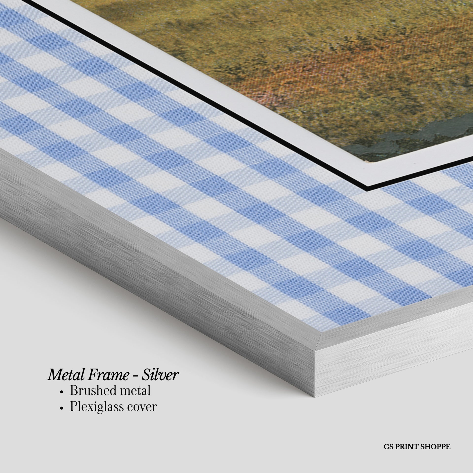Metal Frame: Sleek and modern, our metal frame is crafted with brushed metal for a polished finish. It comes with durable plexiglass and sturdy metal hangers for horizontal or vertical display.