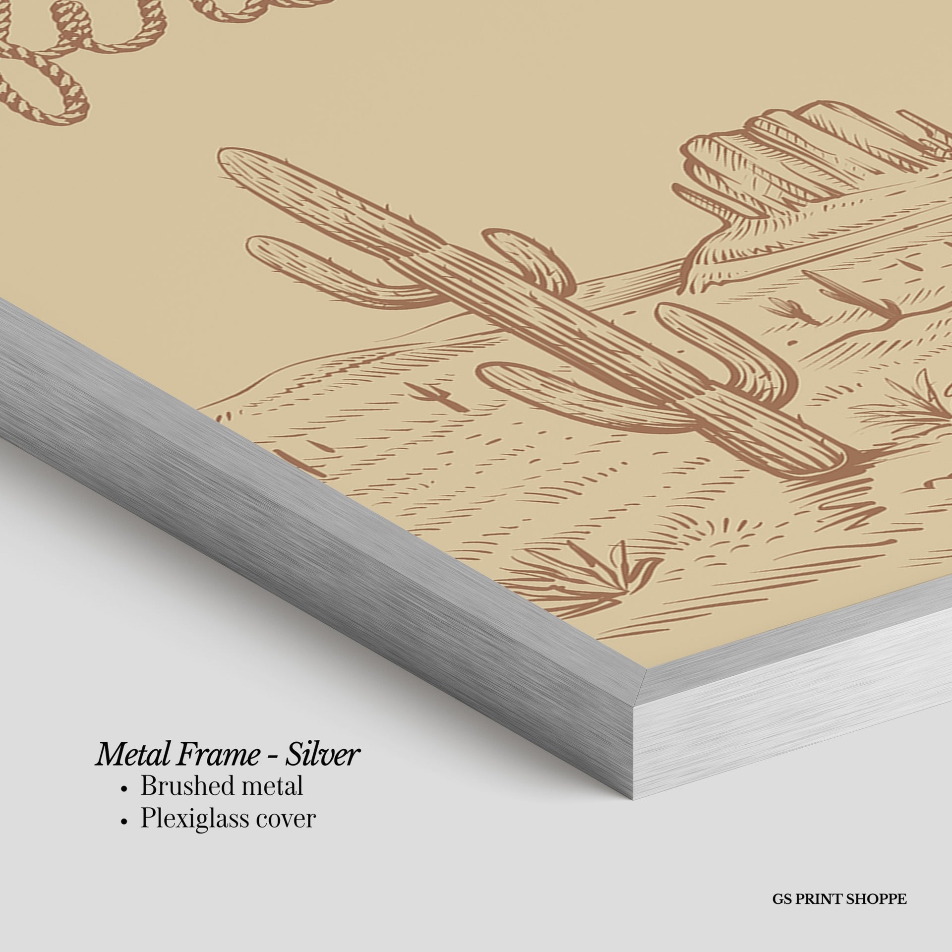 Metal Frame: Sleek and modern, our metal frame is crafted with brushed metal for a polished finish. It comes with durable plexiglass and sturdy metal hangers for horizontal or vertical display.