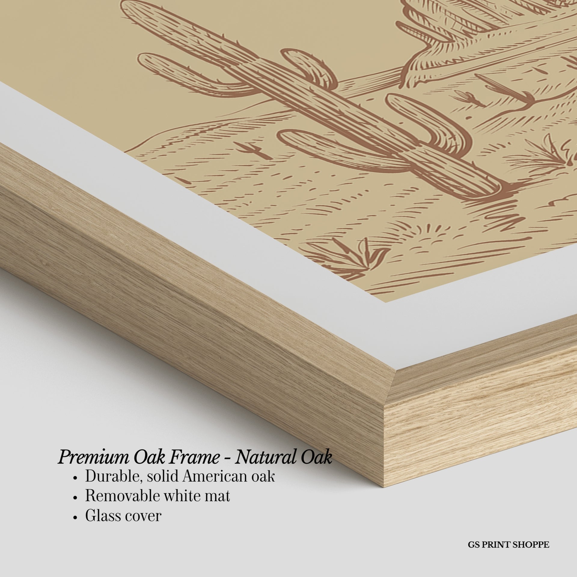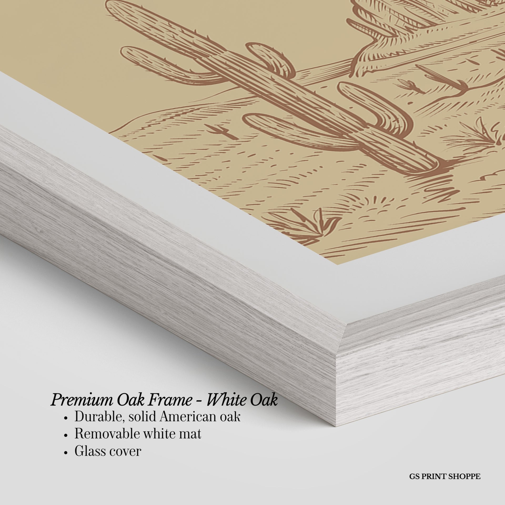 Premium Oak Frame: Our premium oak frame is crafted from solid American oak, offering a warm, natural feel with a high-end finish. We complete this elevated offering with a bright white removable mat and real glass for a versatile and polished look.