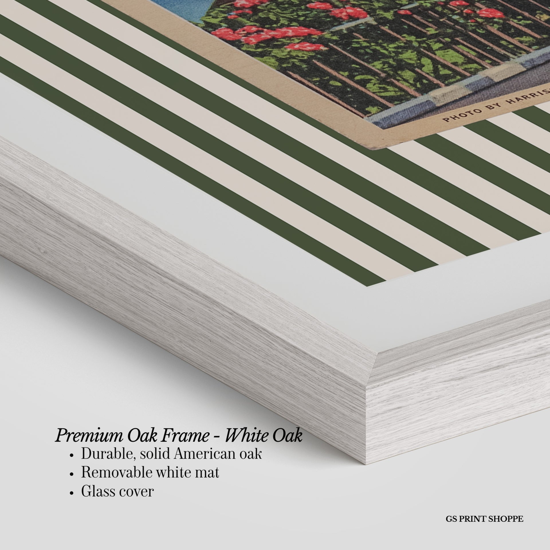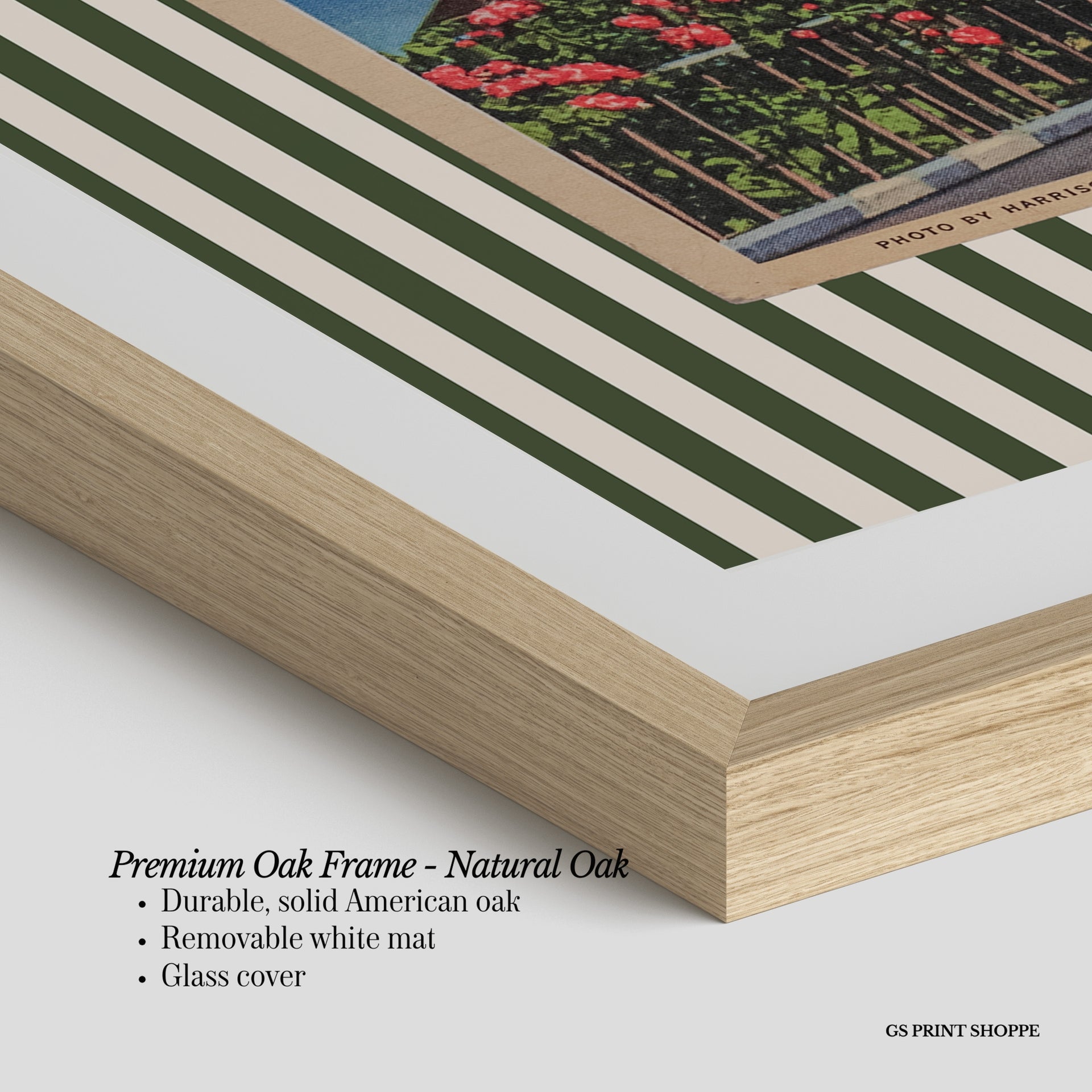 Premium Oak Frame: Our premium oak frame is crafted from solid American oak, offering a warm, natural feel with a high-end finish. We complete this elevated offering with a bright white removable mat and real glass for a versatile and polished look.