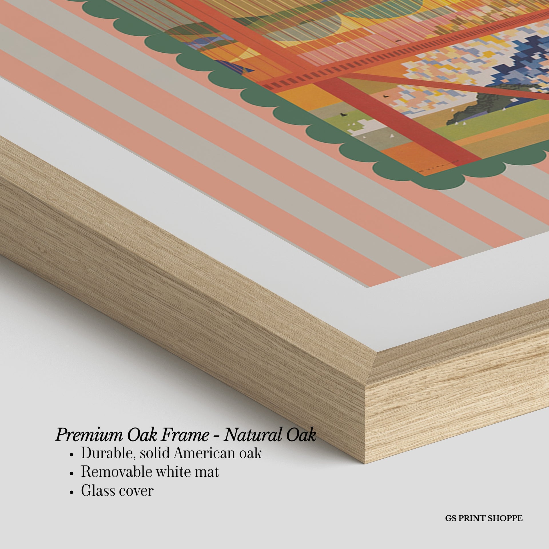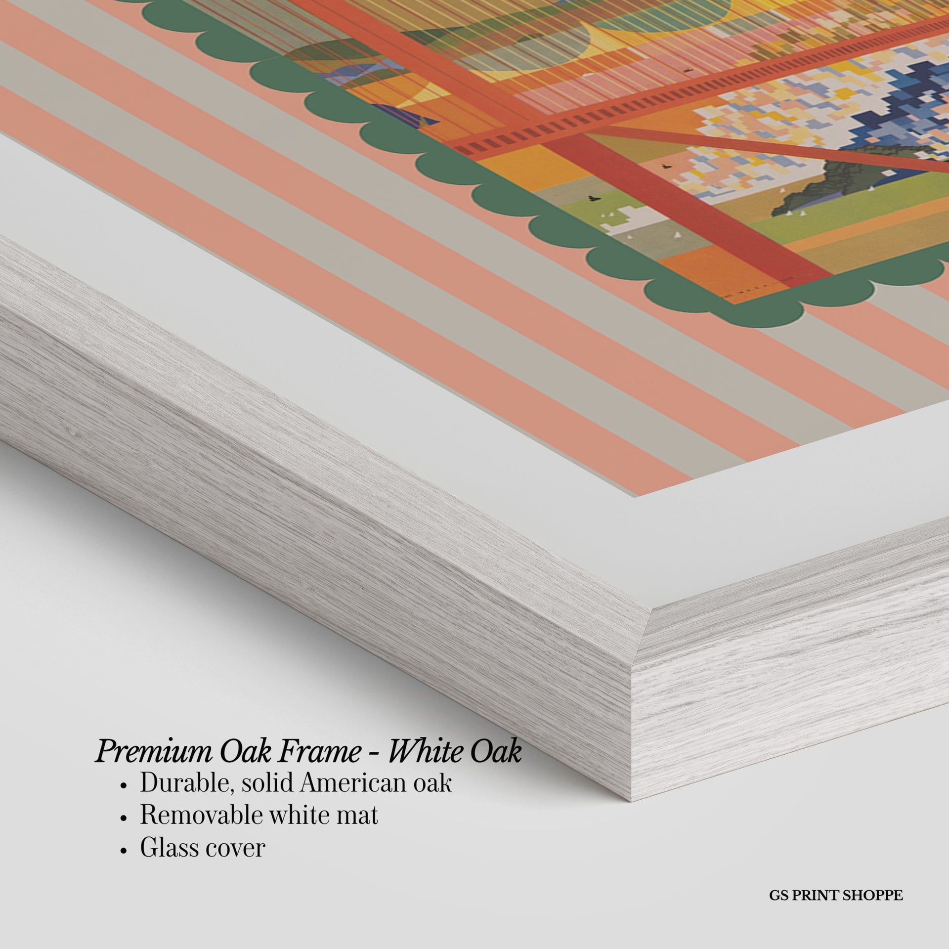Premium Oak Frame: Our premium oak frame is crafted from solid American oak, offering a warm, natural feel with a high-end finish. We complete this elevated offering with a bright white removable mat and real glass for a versatile and polished look.