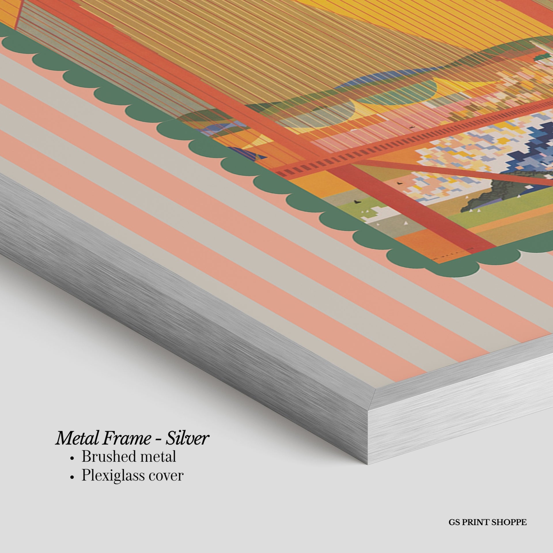 Metal Frame: Sleek and modern, our metal frame is crafted with brushed metal for a polished finish. It comes with durable plexiglass and sturdy metal hangers for horizontal or vertical display.