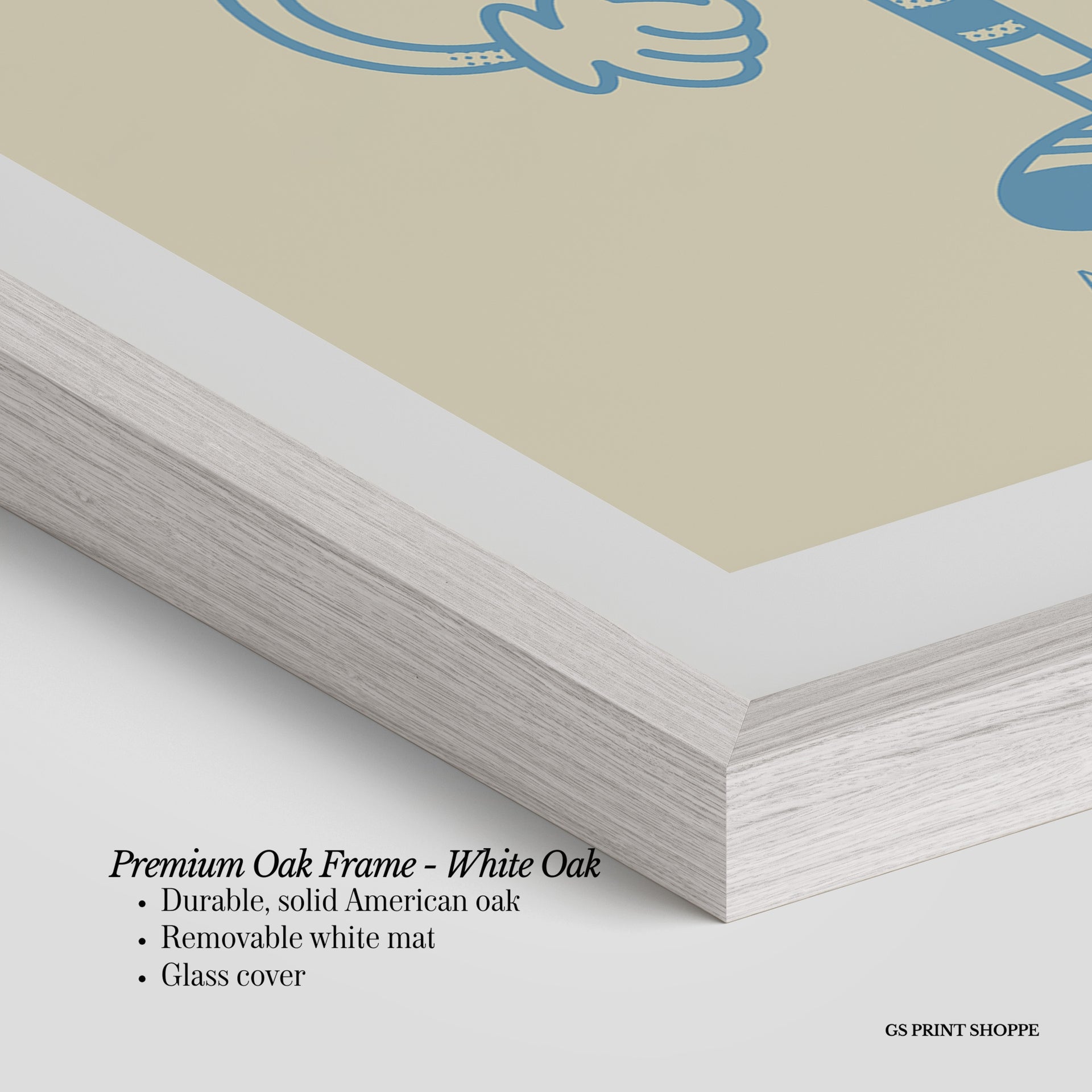 Premium Oak Frame: Our premium oak frame is crafted from solid American oak, offering a warm, natural feel with a high-end finish. We complete this elevated offering with a bright white removable mat and real glass for a versatile and polished look.