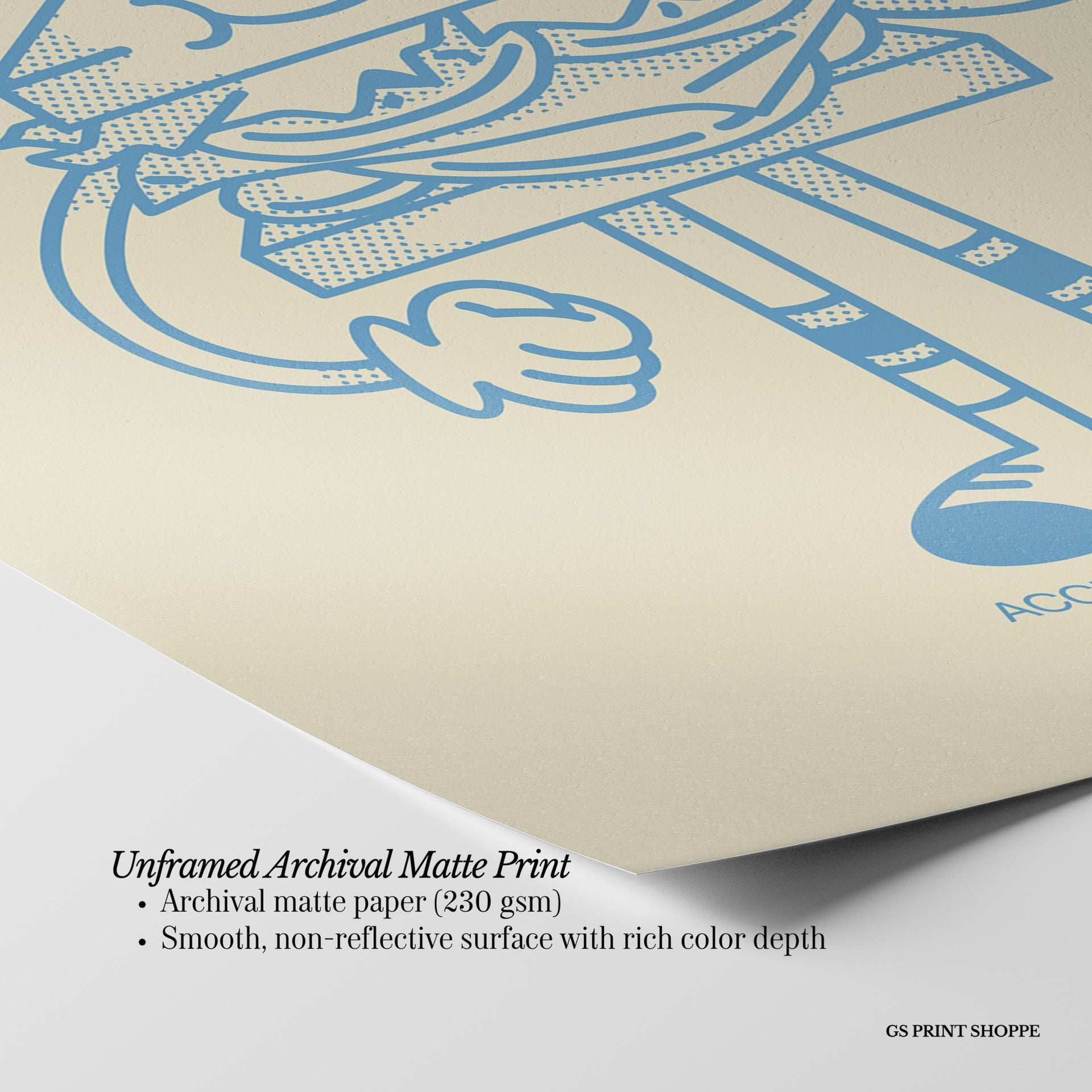 Unframed: This print is professionally printed on archival matte paper (230 gsm), a smooth, acid-free paper with a non-reflective finish. It will be carefully packaged to arrive safely at your door.
