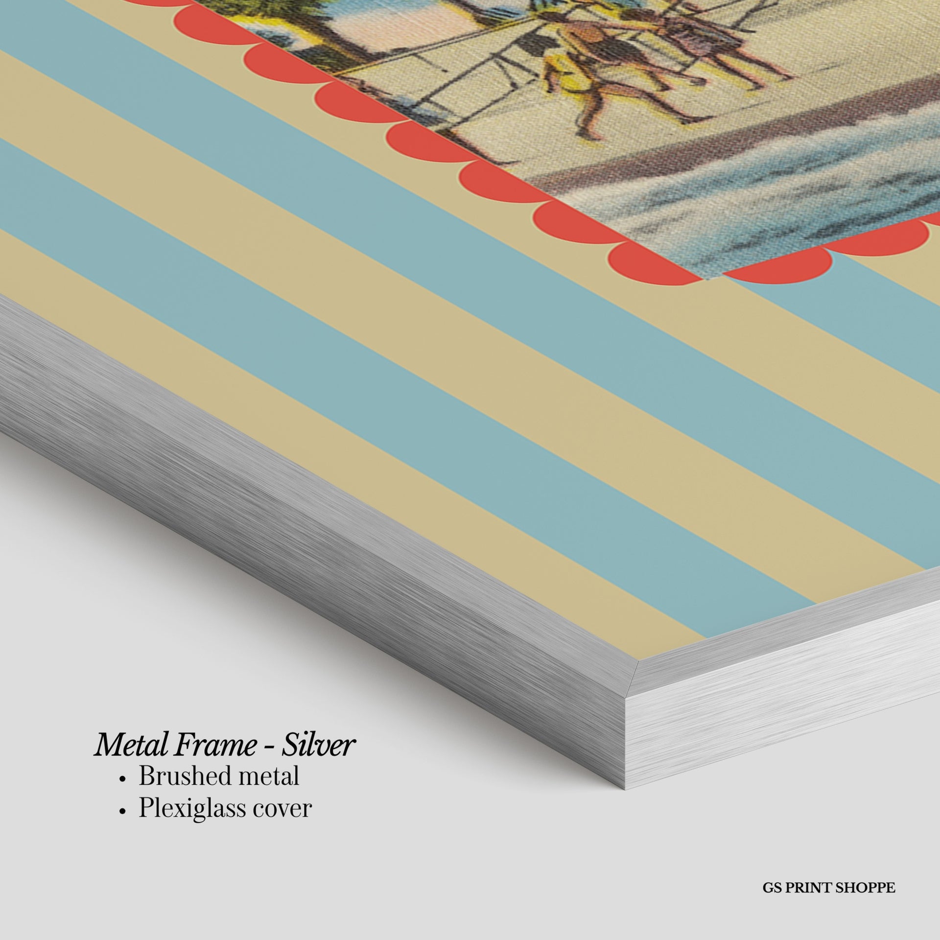 Metal Frame: Sleek and modern, our metal frame is crafted with brushed metal for a polished finish. It comes with durable plexiglass and sturdy metal hangers for horizontal or vertical display.