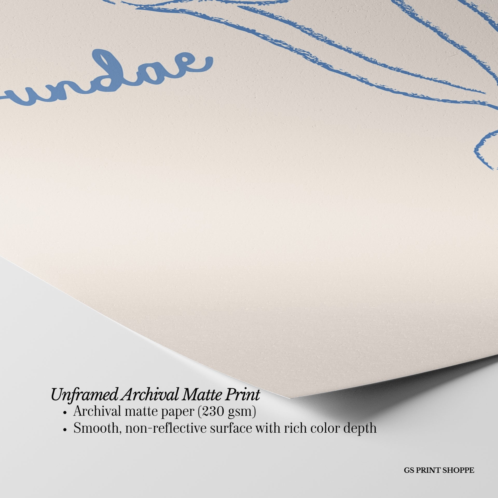 Unframed: This print is professionally printed on archival matte paper (230 gsm), a smooth, acid-free paper with a non-reflective finish. It will be carefully packaged to arrive safely at your door.