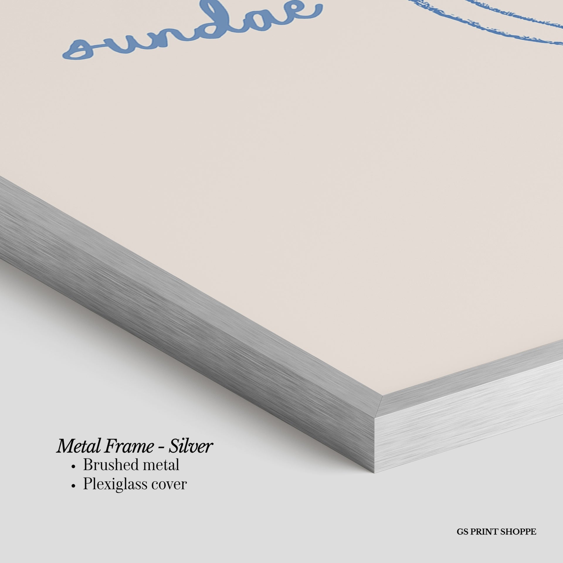 Metal Frame: Sleek and modern, our metal frame is crafted with brushed metal for a polished finish. It comes with durable plexiglass and sturdy metal hangers for horizontal or vertical display.
