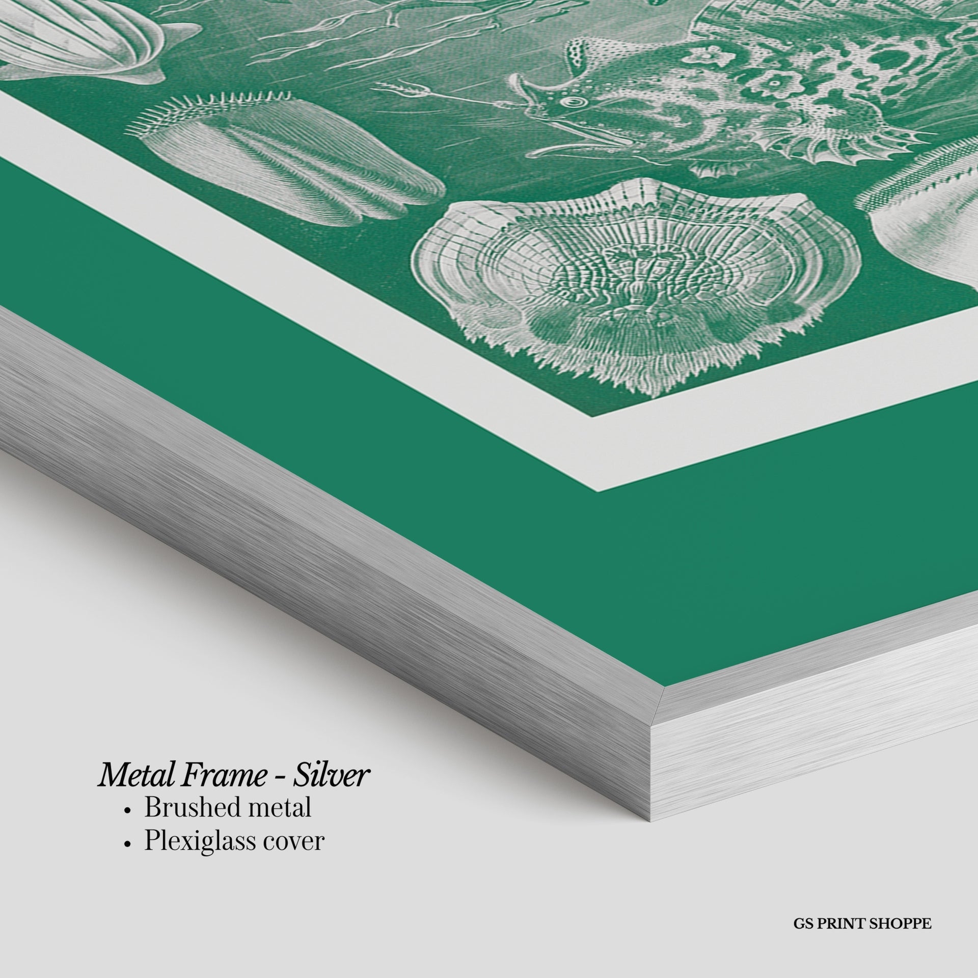 Metal Frame: Sleek and modern, our metal frame is crafted with brushed metal for a polished finish. It comes with durable plexiglass and sturdy metal hangers for horizontal or vertical display.