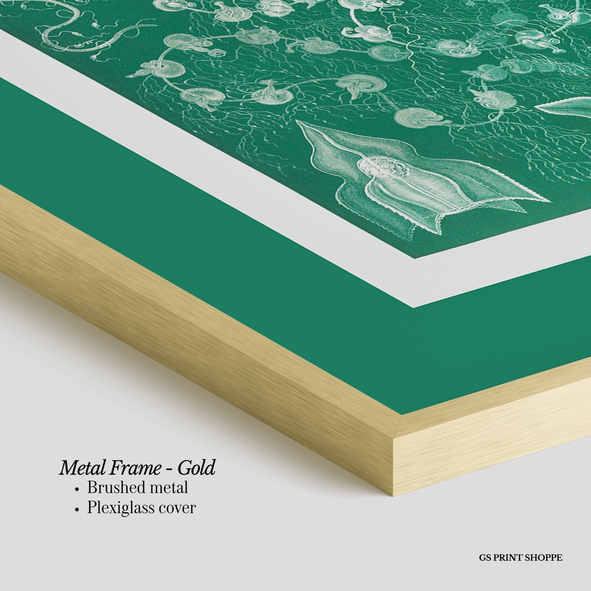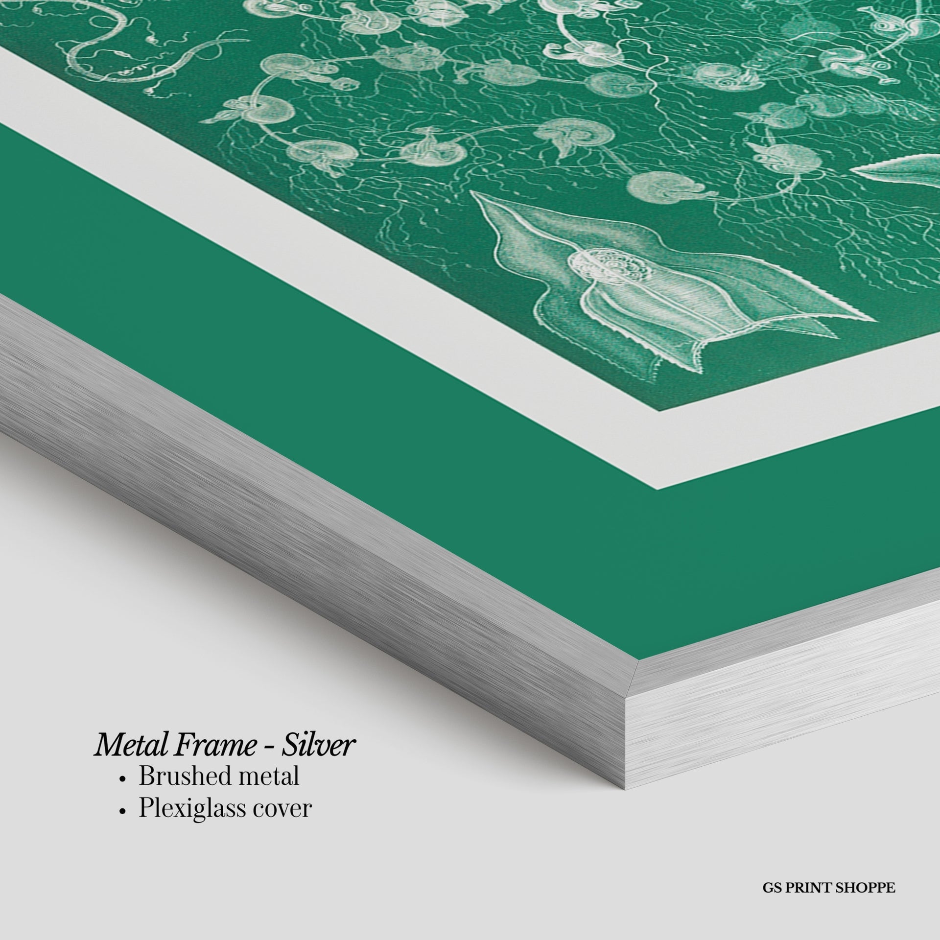 Metal Frame: Sleek and modern, our metal frame is crafted with brushed metal for a polished finish. It comes with durable plexiglass and sturdy metal hangers for horizontal or vertical display.