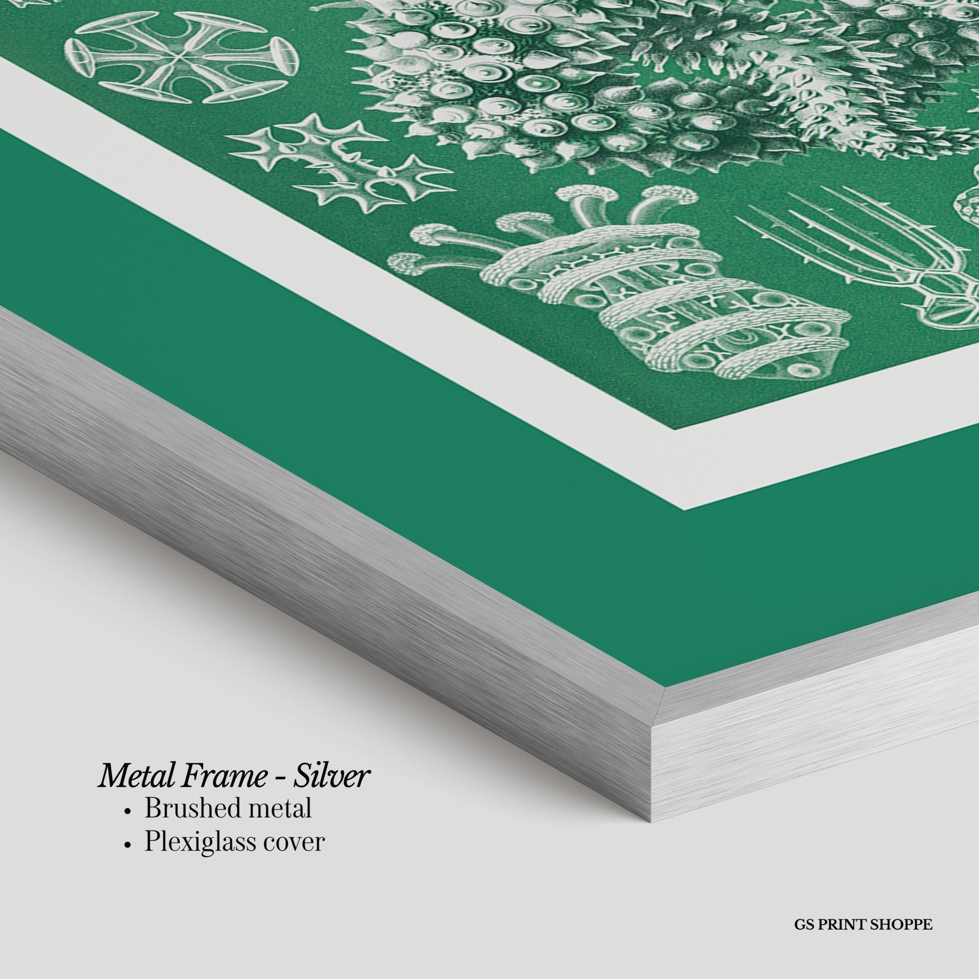 Metal Frame: Sleek and modern, our metal frame is crafted with brushed metal for a polished finish. It comes with durable plexiglass and sturdy metal hangers for horizontal or vertical display.