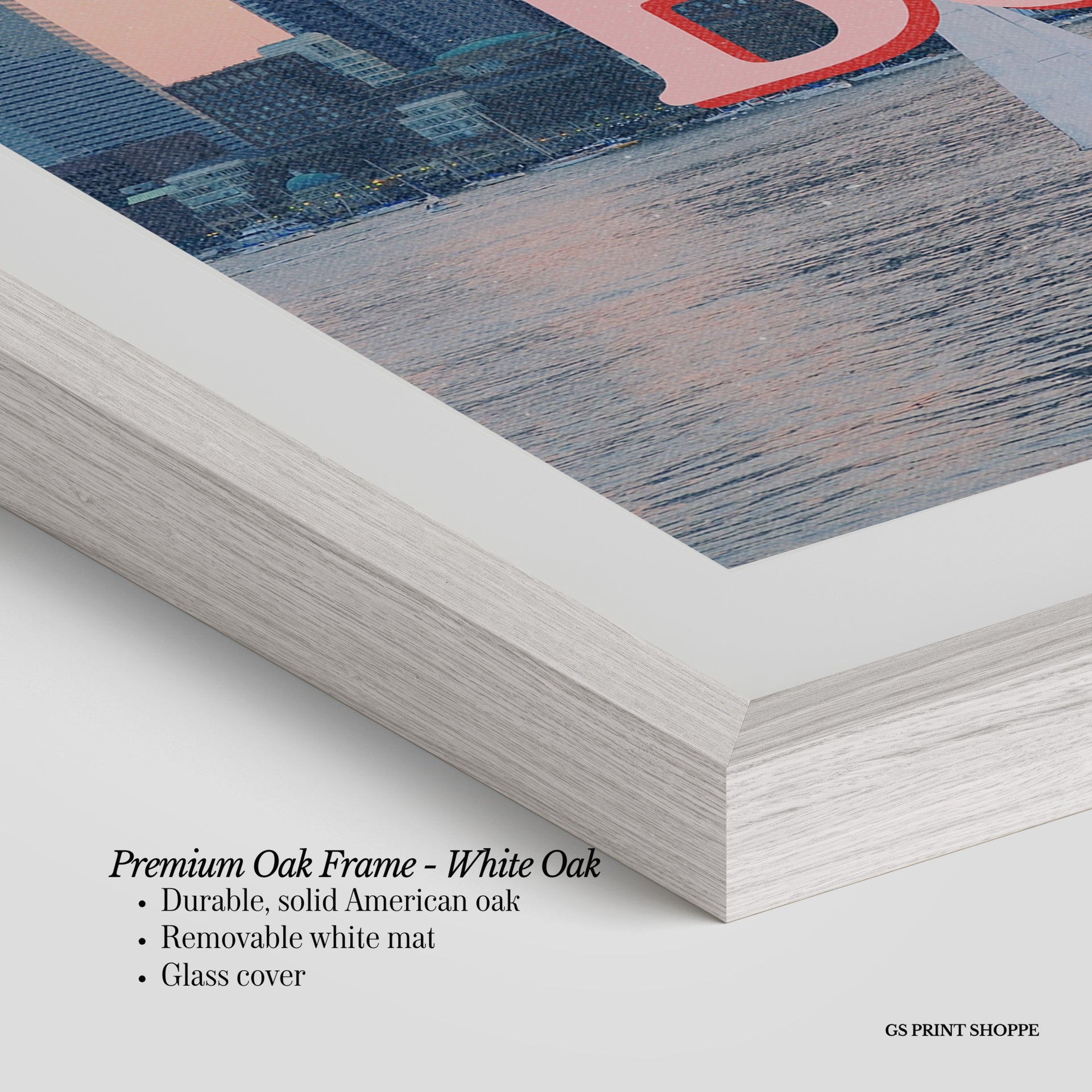 Premium Oak Frame: Our premium oak frame is crafted from solid American oak, offering a warm, natural feel with a high-end finish. We complete this elevated offering with a bright white removable mat and real glass for a versatile and polished look.