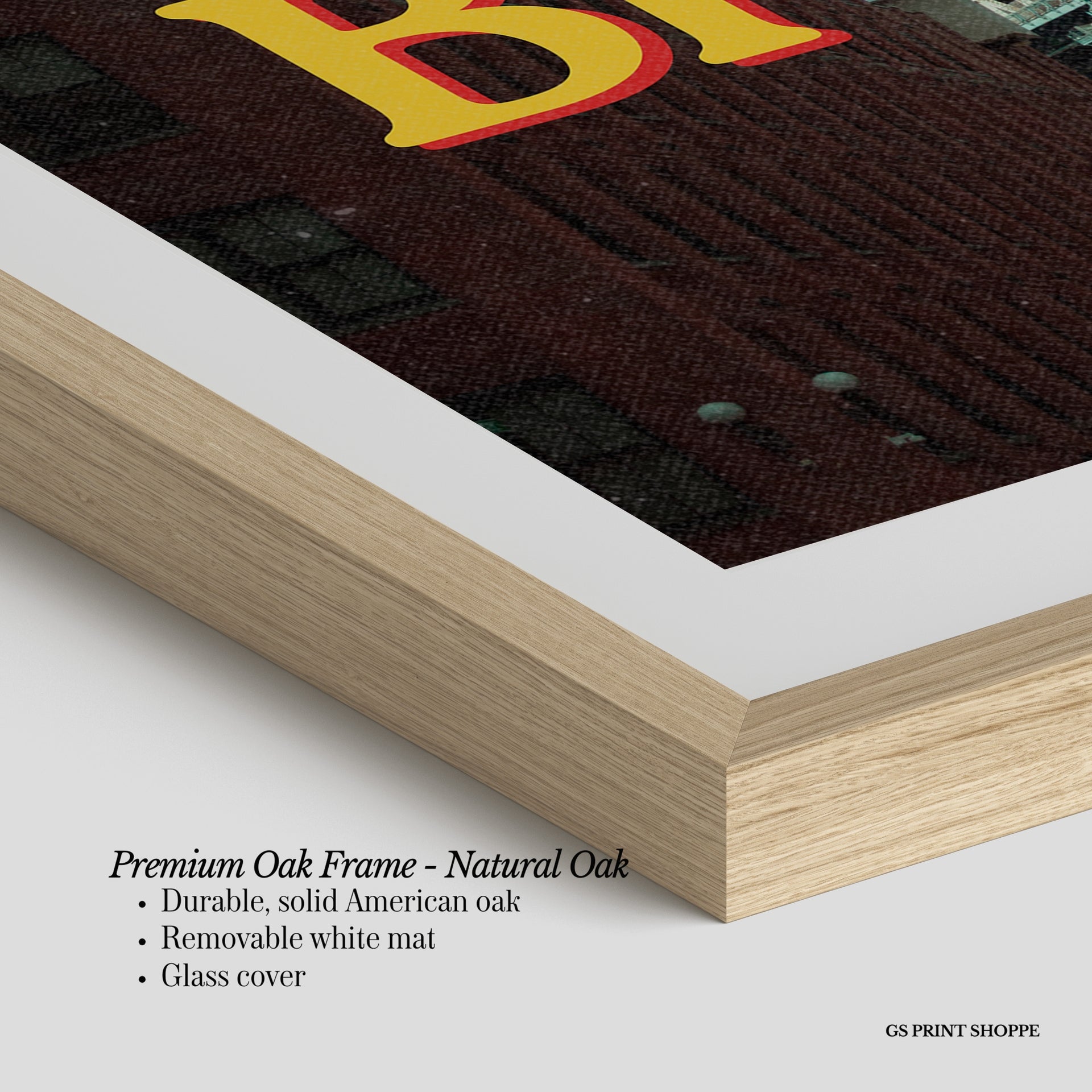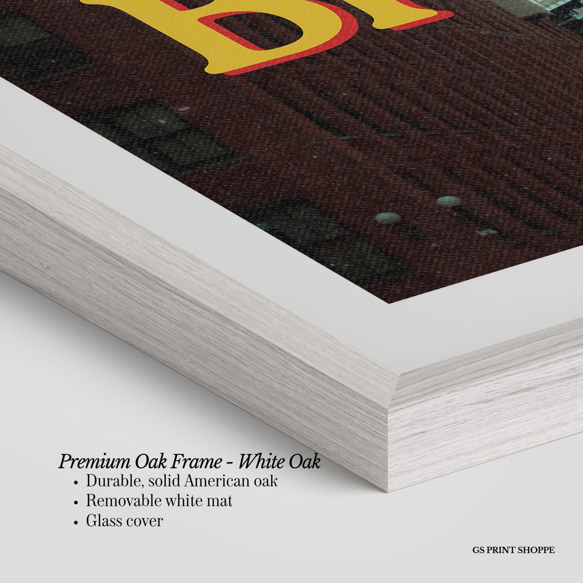 Premium Oak Frame: Our premium oak frame is crafted from solid American oak, offering a warm, natural feel with a high-end finish. We complete this elevated offering with a bright white removable mat and real glass for a versatile and polished look.