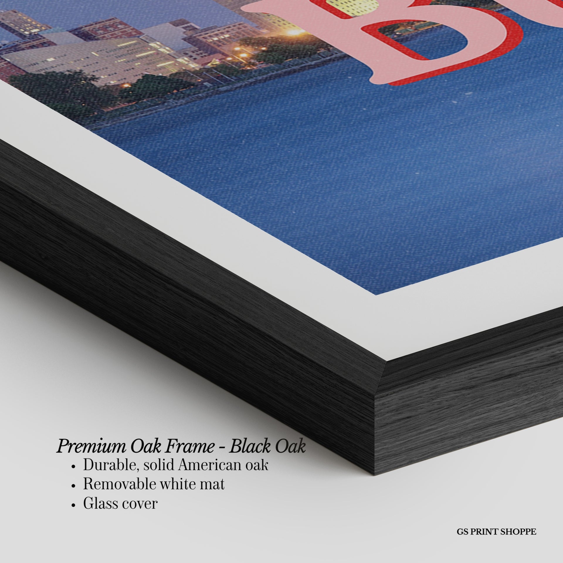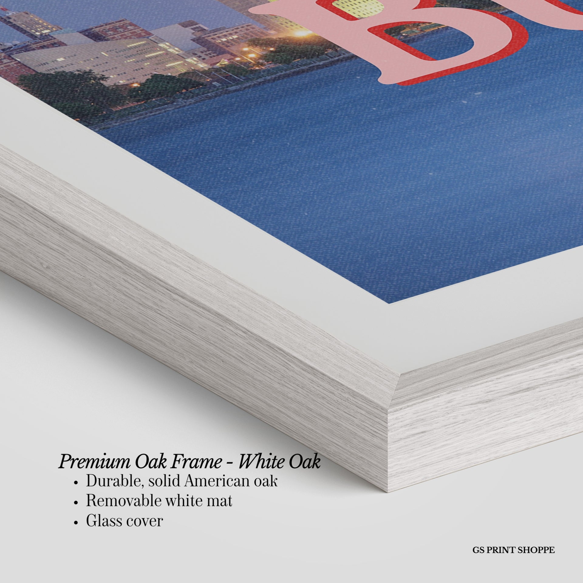 Premium Oak Frame: Our premium oak frame is crafted from solid American oak, offering a warm, natural feel with a high-end finish. We complete this elevated offering with a bright white removable mat and real glass for a versatile and polished look.